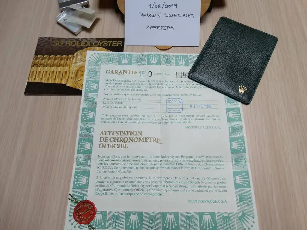 El reloj es Serie W, salió del CO en Enero de 1996. Su primer propietario a penas llegó a usarlo. Lo adquirí a un reputado mercante patrocinador del foro el año pasado, recientemente fue revisado en taller especializado en Rolex, su marcha es perfecta. Su uso ha sido comedido, prueba de ello son las fotografías adjuntas. Su estado, a mi juicio, es excepcional, es más, aun conserva hasta el cierre con la típica dureza de cuando son nuevos.