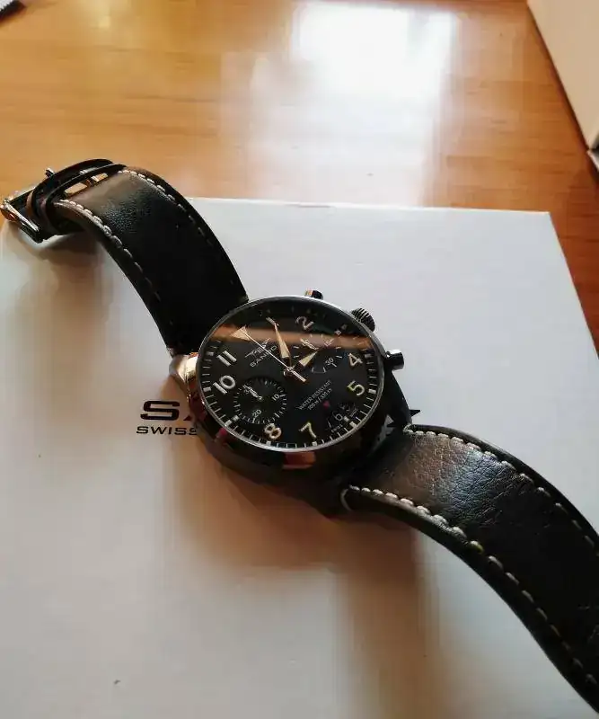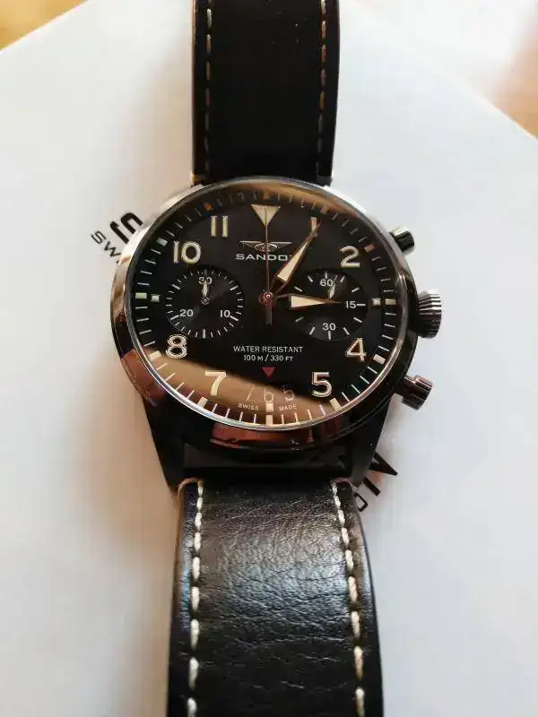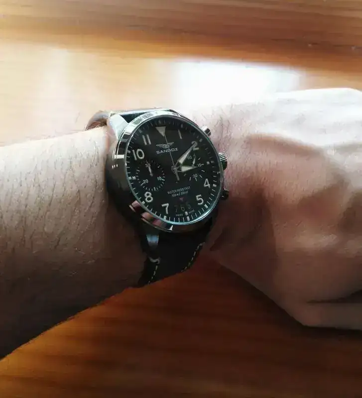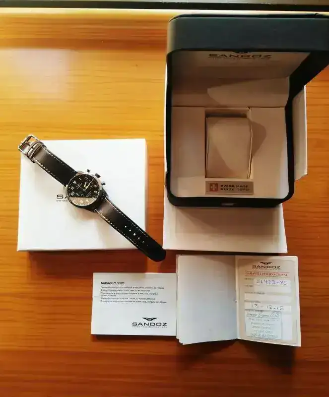 Se vende este precioso Sandoz de la colección Pilot, aunque me gusta muchísimo su estética y tiene una calidad y acabados excelentes…la razón por la que se vende es que es un cuarzo y eso me pesa mucho cada vez que abro la caja, el reloj se ha disfrutado con moderación, está en un estado francamente bueno, en la caja se podría observar algún pelillo propio del uso, más si cabe cuando la caja es pulida, pero apenas son perceptibles salvo que le pongamos demasiado empeño en buscarlos.