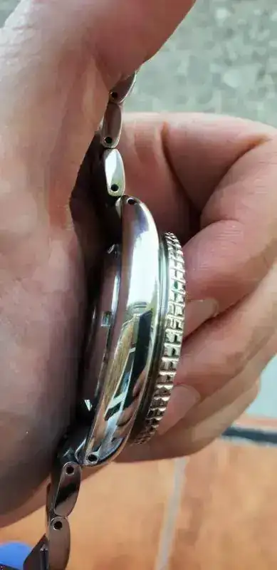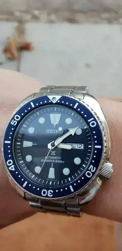 Fruto de que me han ofrecido un nuevo reloj que andaba bbuscando saco de mi colección este, que no tiene ni un año, con armis, esfera azul, tarjeta de garantia. Impoluto, quizas algun pelillo en el cierre del armis. El precio es de 175 euros (añadir los cinco del certificado postal), más barato imposible como podeis investigar.La foto con el nick no se porque me salio negro, es azul como podeis ver perfectamente en las fotos.