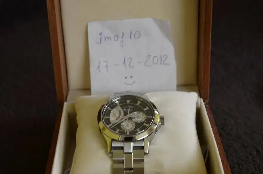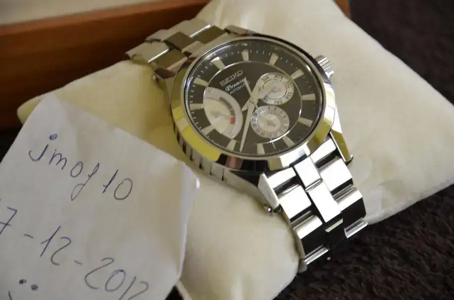 Instrucciones y cajita de madera Seiko (la de la foto) incluidas.