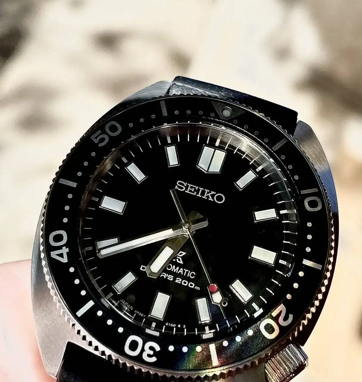 Monta un cristal de zafiro con AR interior, lumen Seiko y calibre 6R35 con 70 horas de reserva de marcha.
