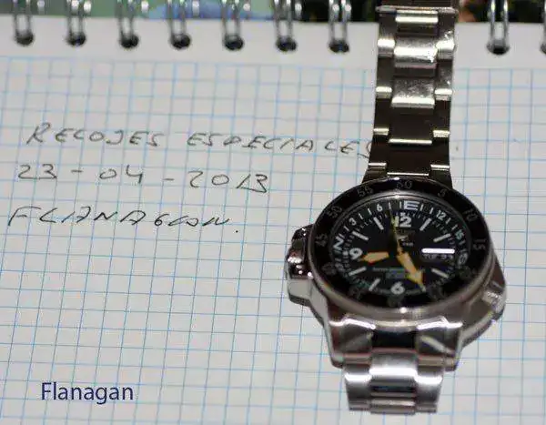 -Esfera negra con saetas amarillas-blancas y marcadores horarios blancos luminiscentes.