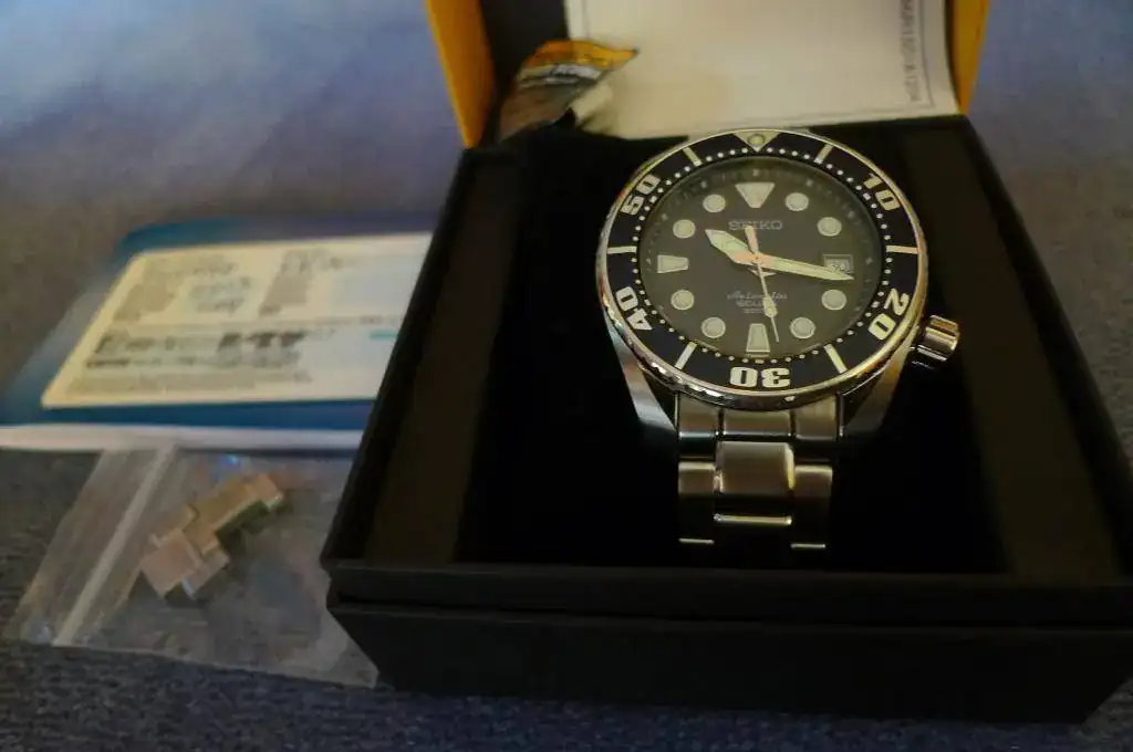 Vendo Seiko Sumo Azulito en excelente estado. Tiene marcas de uso, mayormente pequeños pelillos y algo de desgaste en el cierre y armis( poco apreciable) Comprado en Septiembre del 2013 al señor Higuchi.