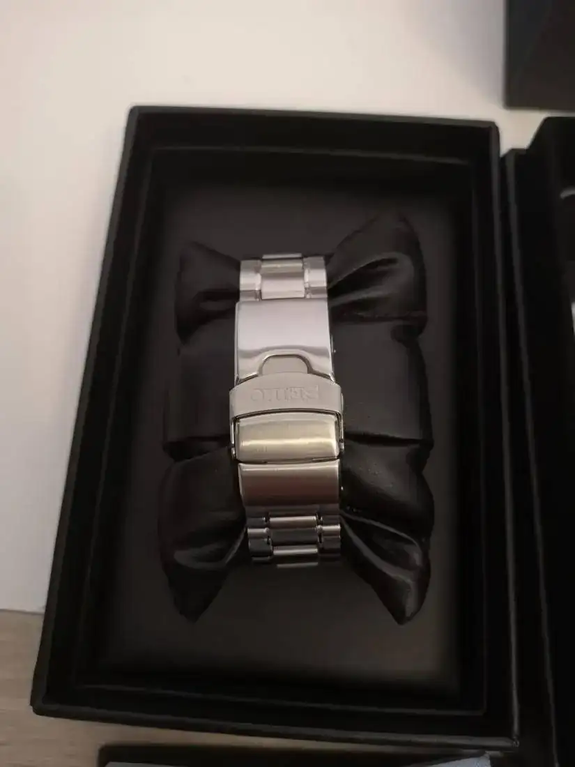 El brazalete del reloj está en estado impoluto. No tiene ni los pelos del uso ya que poco ha salido de casa