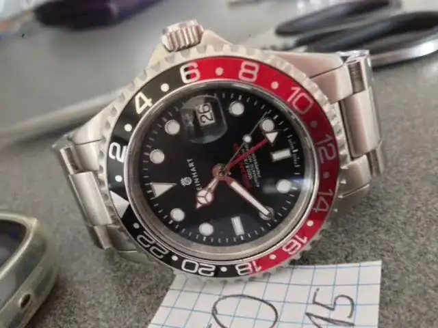 Debo sacar a la venta este precioso STEINHART Ocean GMT Coke de 42mm. Todos sabemos los pedazo de relojes que son estos Steinhart, para mi los mejores en relacion calidad-precio pero hasta que no tienes uno en la mano, no te das cuenta realmente de la verdadera calidad.El armis es macizo de 22mm de ancho. Los eslabones, van unidos con tornillos.La caja de acero tiene 42 Mm., sin contar la corona.El cristal, es de zafiro con doble capa de antireflejos interno.Su calibre, es el conocido ETA 2893-2, con remonte manual, y parada de segundero.El reloj se encuentra en un estado excelente conserva el plastico trasero. Tan solo señalar la posibilidad de algún pelo tipico en el cierre del armys.