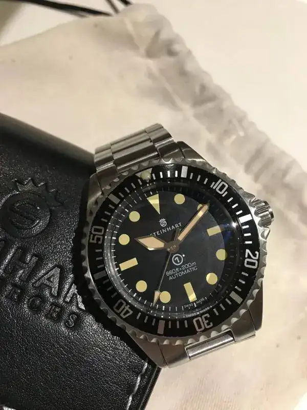 Hola a todos, pongo a la venta este Steinhart Ocean one Military 1.0 (primera edición) se diferencia en la tipografía del dial y en su color (este es totalmente negro) a mi parecer este es mucho más bonito que la versión que se hace actualmente.