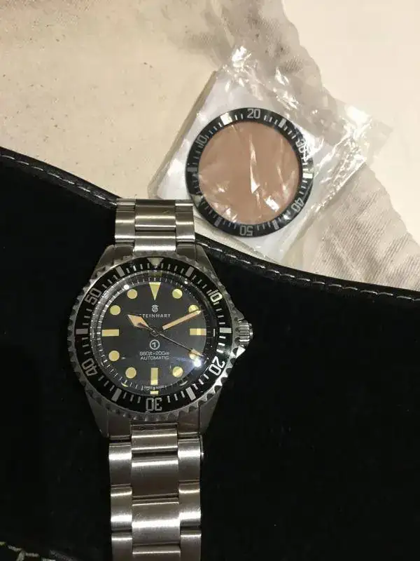 Lo que si tiene es un desgaste en la parte de las 10-11 del insert del bisel y se aprecia levemente el aluminio, por eso adjunto uno nuevo original Steinhart para su futura sustitución, en las fotos lo podreis apreciar