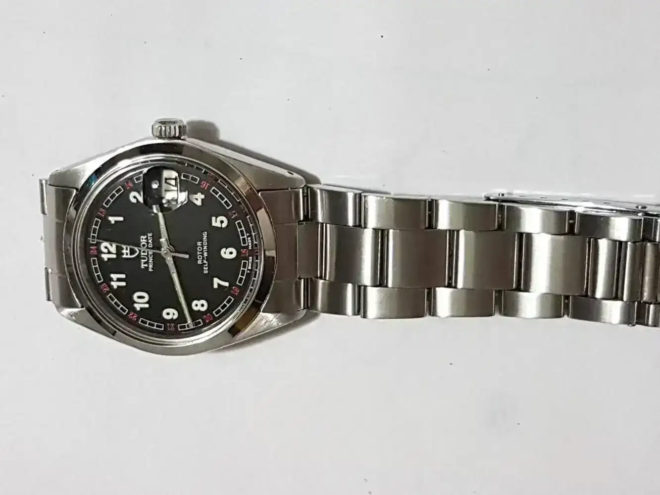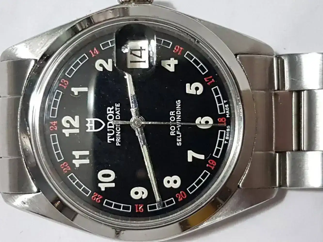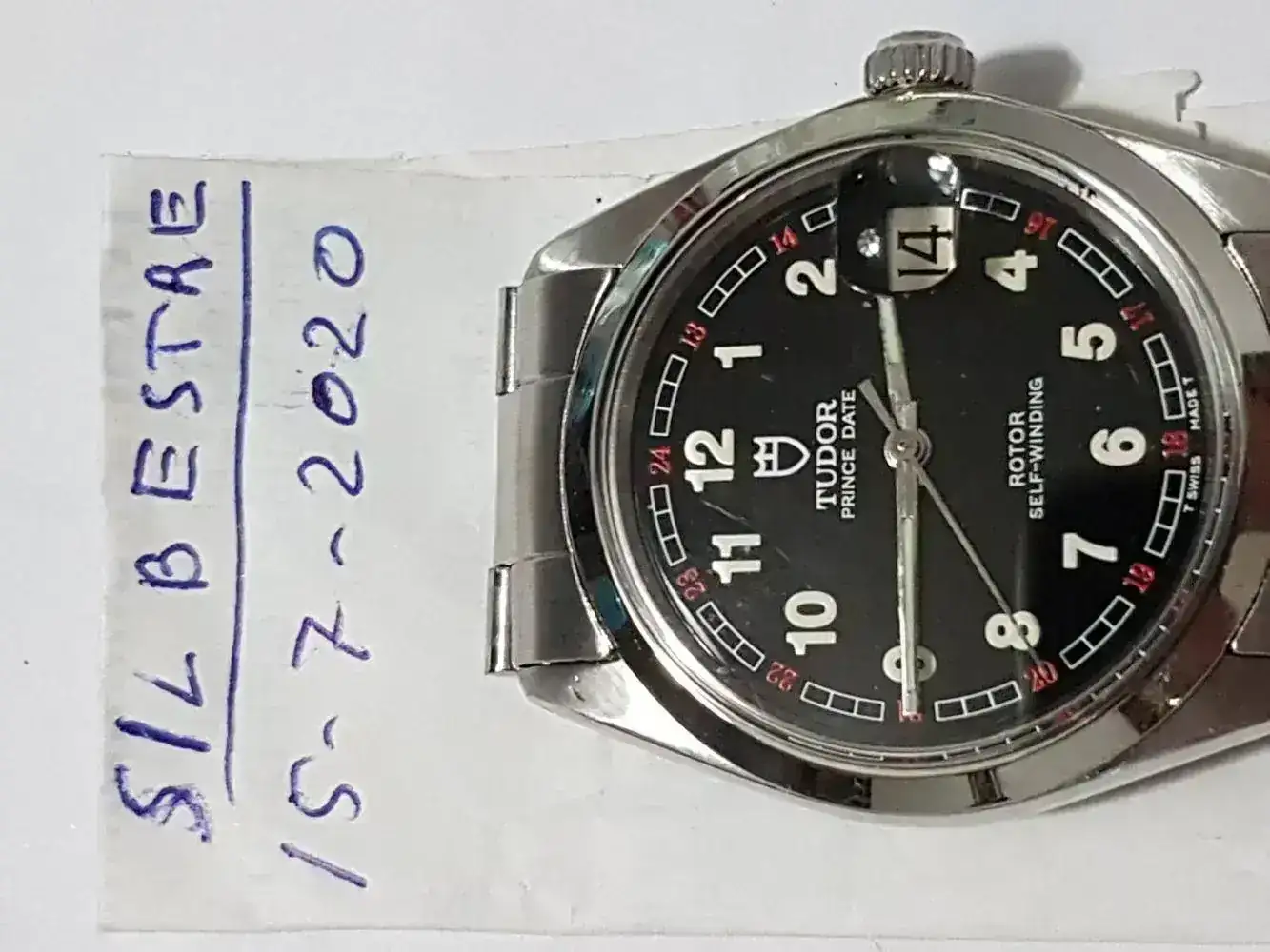 Vendo Tudor Prince referencia 90500. Reloj de los años 80, creo.se ha llevado a servicio autorizado Rolex.donde se le ha cambiado el cristal; se ha pulido el brazalete; se ha cambiado la esferay se le ha puesto esta que lleva que es de la época, y comentar de que la esfera tiene un defectillo, que no he podido sacar en las fotos pero que no impide la visualización de la hora. La esfera tiene puesta tiene 30 años, pero se entrega tambien con la original, que esta algo peor. Tambien se le ha repasado la maquinaria. Y su funcionamiento es perfecto. por lo que tiene un año de garantía del funcionamiento.