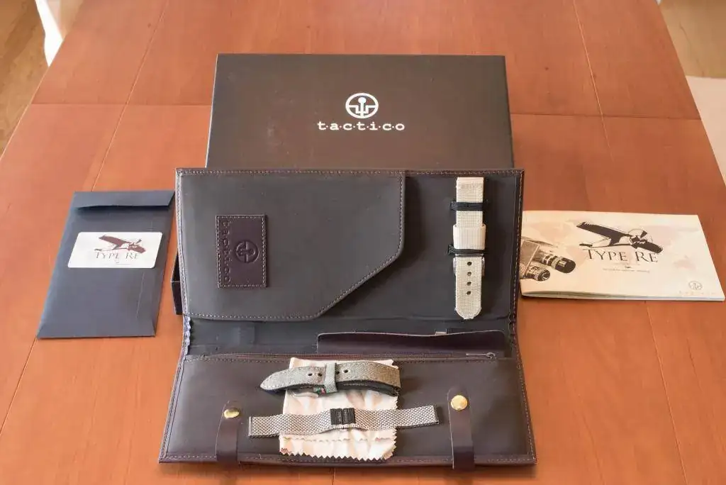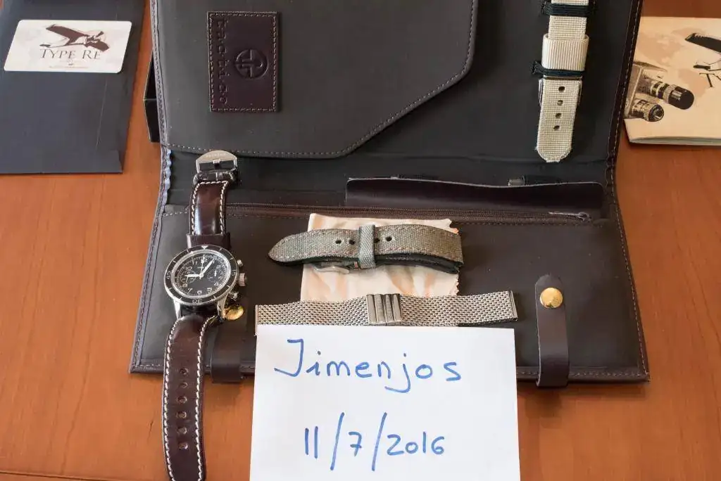Se entrega con la dotación completa: caja exterior de cartón e interior en simil piel, pasadores de repuesto, herramienta para el cambio de correas, gamuza, correa de vacuno, de nylon y milanesa para muñeca de 18 cm, a lo que añado una correa canvas verde. Todas las correas están en buen estado.