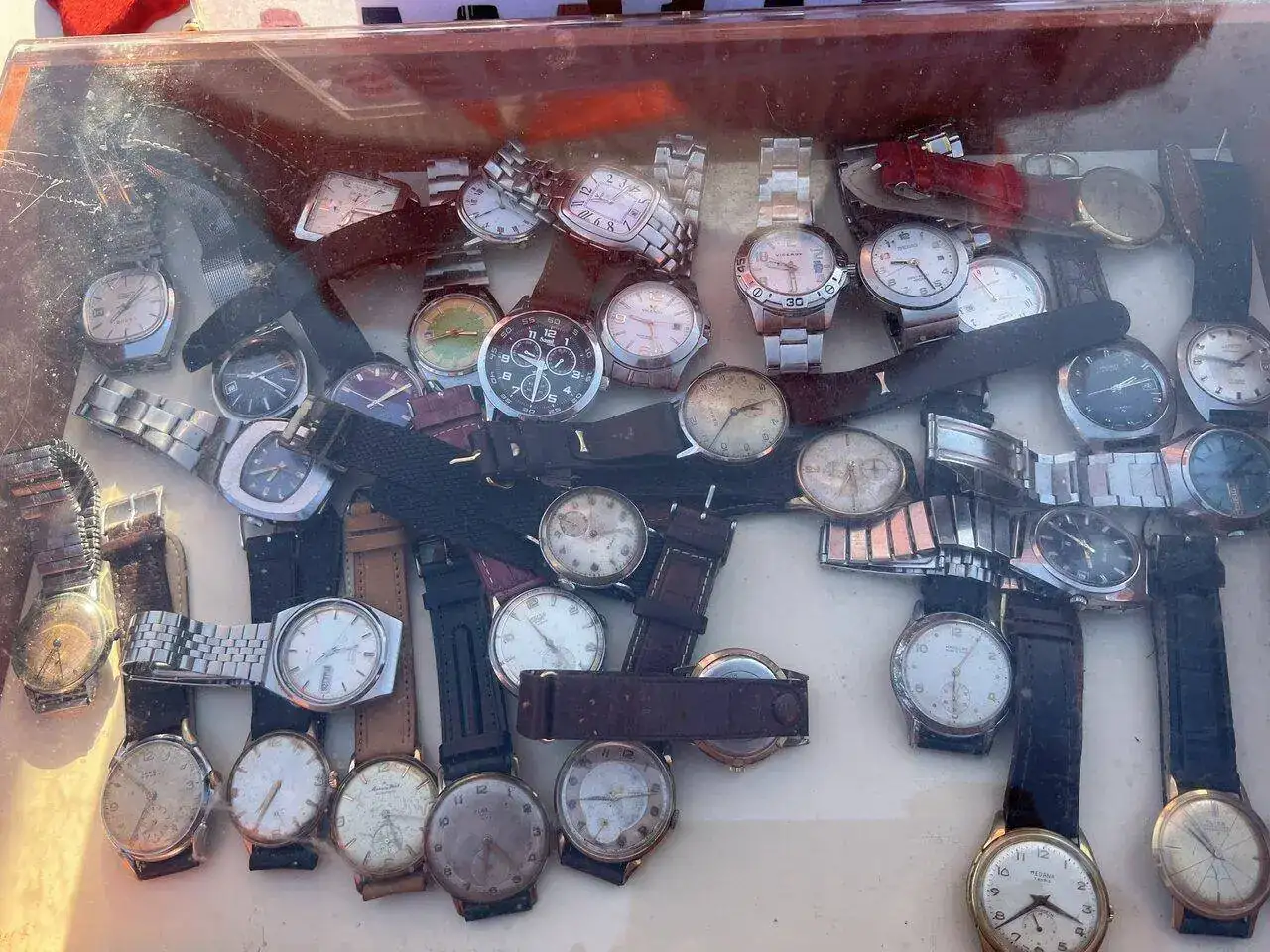 Y una fotografía de más relojes que tiene el buen señor que los vende , como veréis el orden no es lo suyo.