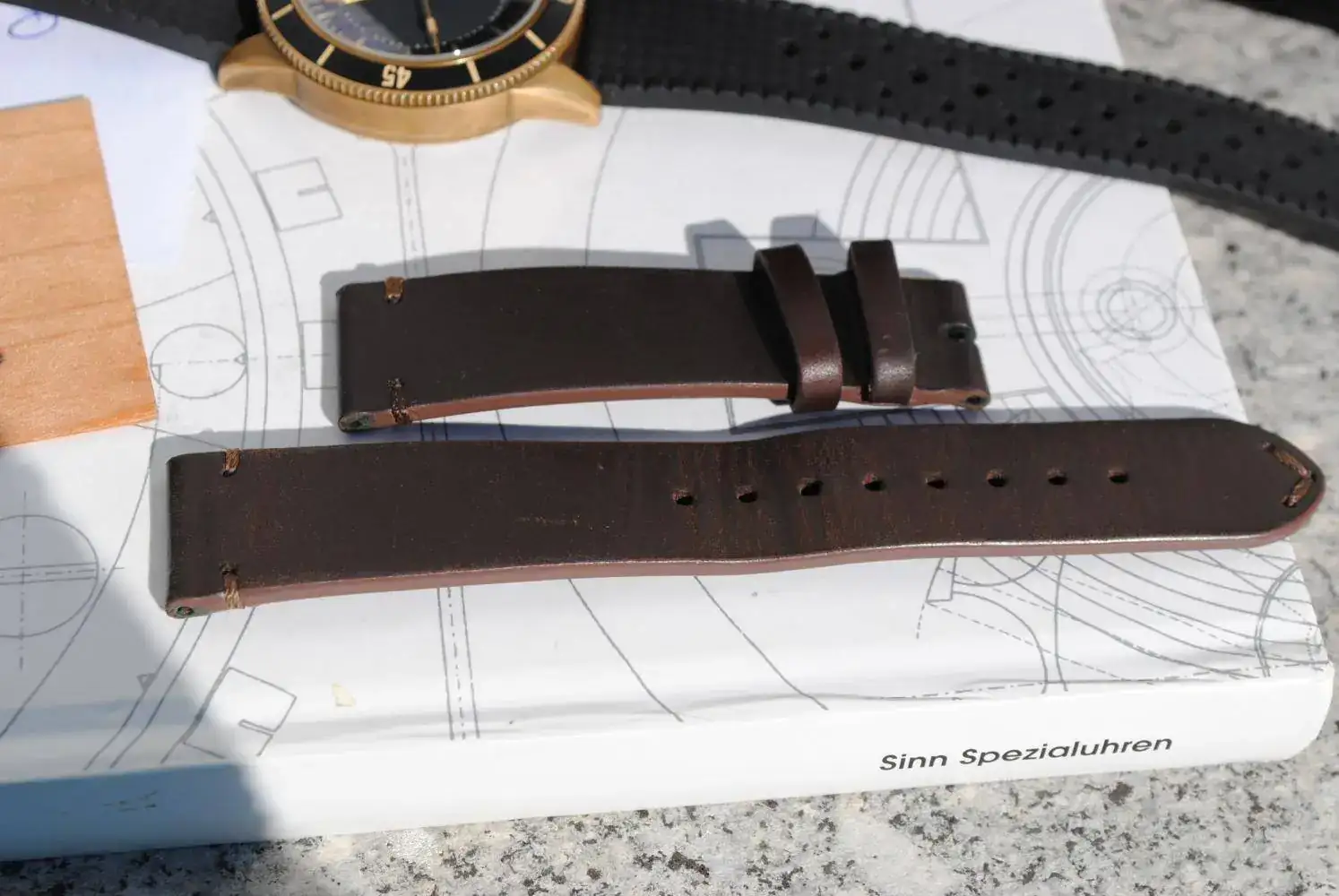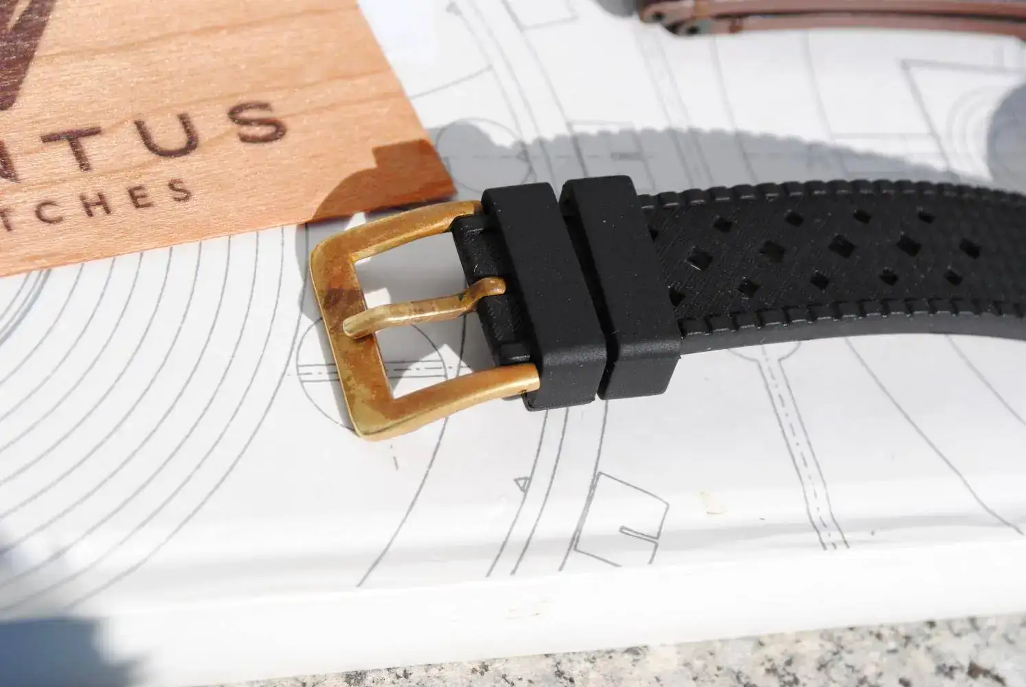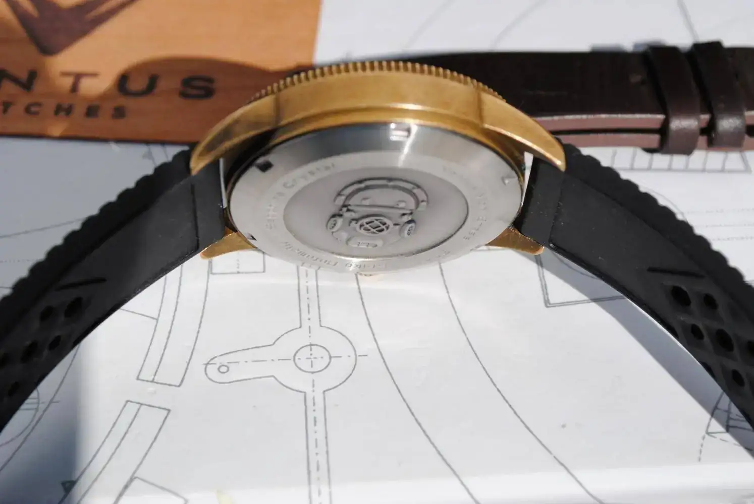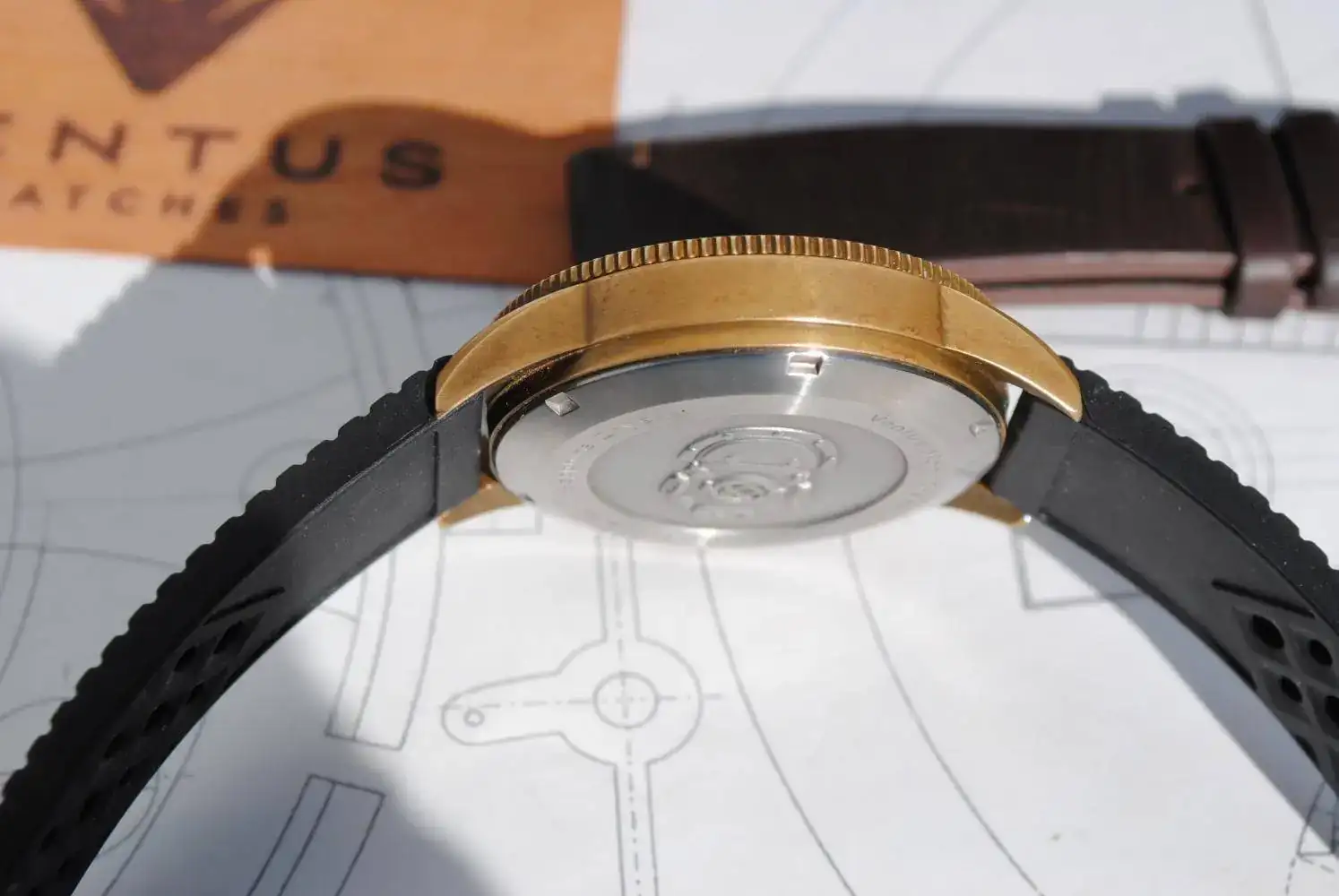 Lo envío con su estuche de madera, su tarjeta de garantía ya espirada y sus correas originales : La tropic negra y la minimalist de piel marrón oscuro. Ambas firmadas y con un sólo bucle de latón que es cómo vienen estos Ventus.
