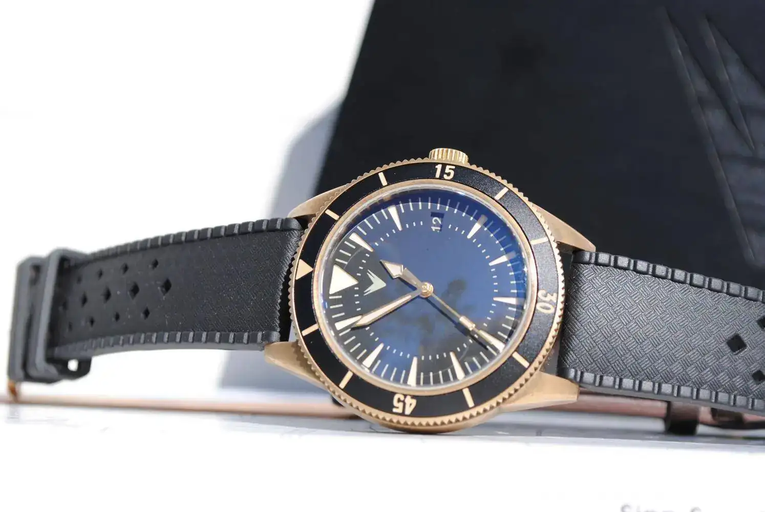 Una preciosidad de reloj. Tiene ya una bonita pátina natural. No le hice nada artificial para que la tenga. El dial es simplemente perfecto y esa combinación de negro y latón una maravilla.