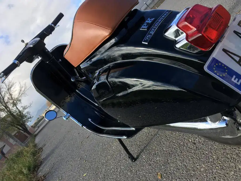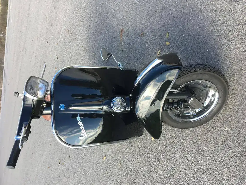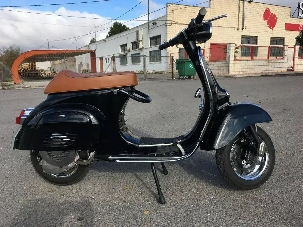 Vespa 75 Primavera completamente restaurada y mejorada. Llantas cromadas, amortiguadores regulables YSS, carcasa de ventilación cromada, guardabarros cuadrado, cresta cromada, anagramas, embellecedores, cables puños, manetas, velocímetro nuevos, piloto trasero cromado, asiento sport primavera, pintura profesional con protección especial anticorrosión en bajos. Motor abierto, revisado y cambiadas juntas, rodamiento biela, etc. Cilindro olimpia 130 cc. Tubo de escape Sip Road primavera cromado, filtro de aire pollini, discos de embrague reforzados racing Newfren, etc. etc. ITV pasada hasta Diciembre de 2018. Entrego también las piezas viejas