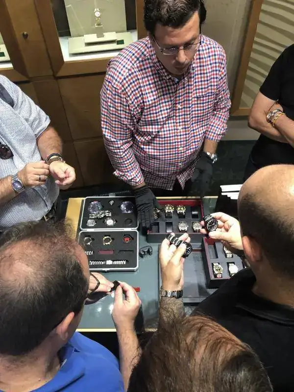 En primer lugar queremos dar las gracias encarecidamente a Ulibarri Joyeros (www.ulibarri.es) (Instagram: @ulibarrijoyeros) por su apoyo incondicional desde la primera reunión, su participación en la organización de la comida, su esfuerzo incansable por hacernos sentir como en casa en todas las visitas a sus Relojerías y por supuesto, por todas las gestiones llevas a cabo que nos permitieron disfrutar de auténticas joyas de la relojería, exclusivas novedades y relojes muy difíciles de ver en Concesionario Oficial. Mención especial para el equipo formado por Javier, Sagrario y Lucia, de verdad que no hay palabras para expresar nuestro agradecimiento.