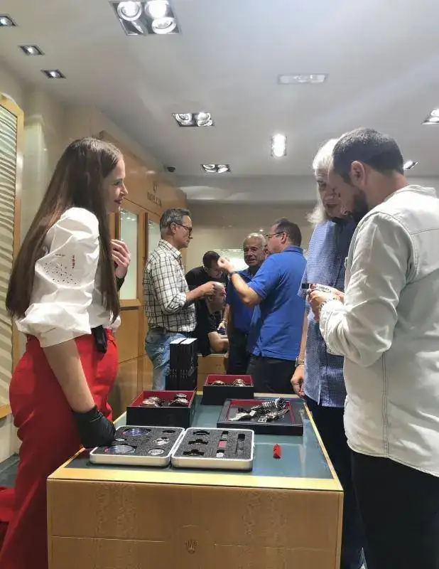 En el momento de la despedida, los propietarios de relojes Tudor que lucieron orgullosos en la Relojería, pudieron recoger un detalle de la Marca muy especial que incluía un fantástico libro sobre la historia de Tudor, el catalogo 2019, una libreta moleskine personalizada y un bolígrafo. Y para compensar la envidia de los demás asistentes, éstos pudieron llevarse tambien otro detalle muy goloso que incluía el libro, el catalogo y una nueva gorra. En esta ocasión solo se podían ver sonrisas y manos llenas al salir de Ulibarri.