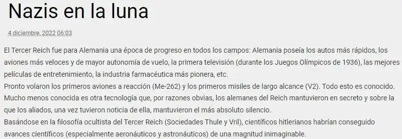 el diálogo me recuerda a mí cuando voy a la playa temprano y me encuentro con que algún listo ha dejado la sombrilla para reservar sitioA ver, quizás estoy equivocado pero el rigor informativo y la autenticidad que me ofrece por ejemplo el National Geographic, me convence mucho más que otras web como por ejemplo MundoOculto que un día te dicen que el hombre nunca piso la luna y otras veces te dicen que...