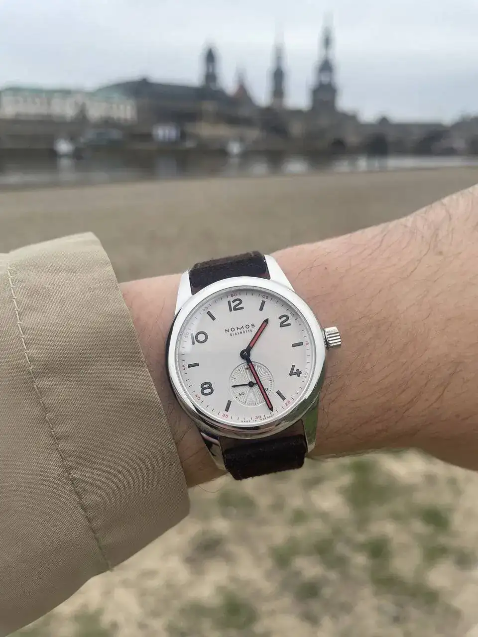 Dudé 15 segundos, pero en el fondo ya lo sabía, el Club se venía conmigo. Pero el reloj tiene una cosa muy mejorable, la correa. Tenían muchas opciones y al final acabé decantandome por una de terciopelo marrón, lo cual fué un acierto (en mi opinión). Al salir de la relojería fui al hotel para cambiar el reloj y dejar el MR01, los siguientes 3 o 4 días no me quité el alemán de la muñeca.