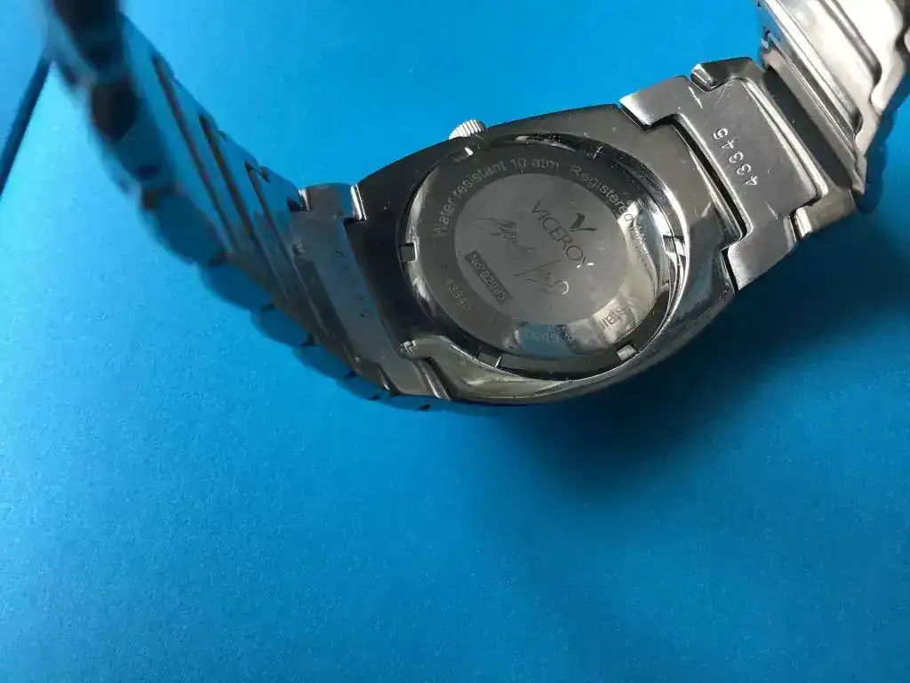 ) que se hizo a principios de los años 2000. Caja de acero, sumergible 10atm y corona roscada y firmada Viceroy. Funciona perfectamente.La pila tiene 2 dias (movimiento Miyota cuarzo).