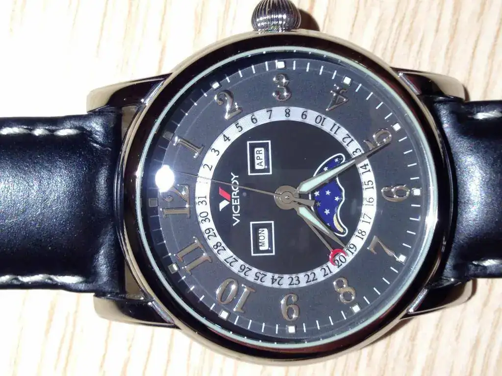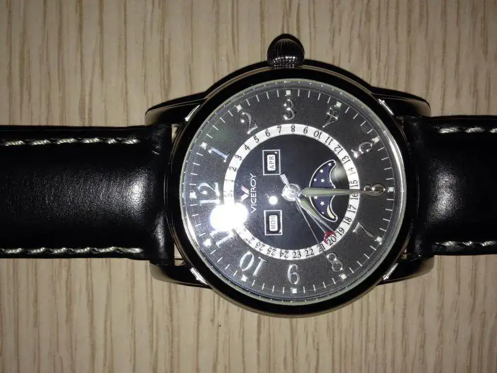 Viceroy de cuarzo y calendario perpetuo con fases lunares de reestreno (40 sin corona, 42 con ella) adquirido por mí en 2005. La correa está en muy buen estado ya que lo he utilizado en tres ocasiones como máximo, por lo que siempre ha estado guardado y únicamente tiene algún pelo muy superficial. No tengo la caja, pero si el libro sellado. El precio, 65 € puesto en casa por correo certificado.