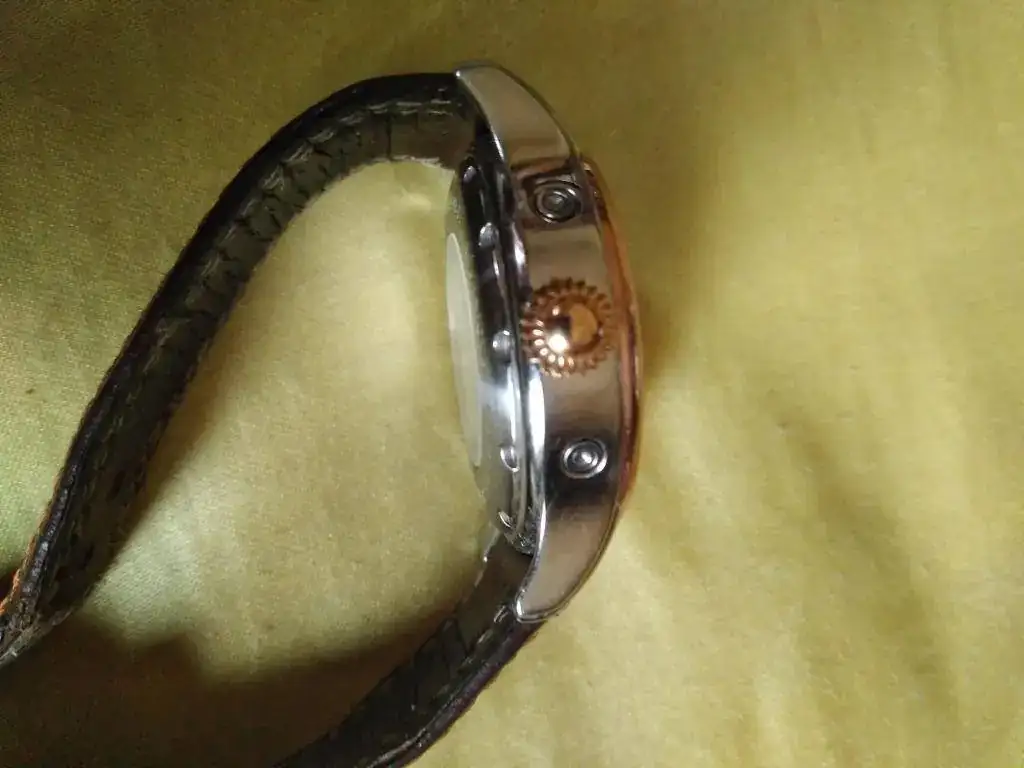 Este reloj se vendía originalmente como de señora, pero la caja mide 38 m.m. sin corona, por lo que tampoco desmerece nada en una muñeca masculina