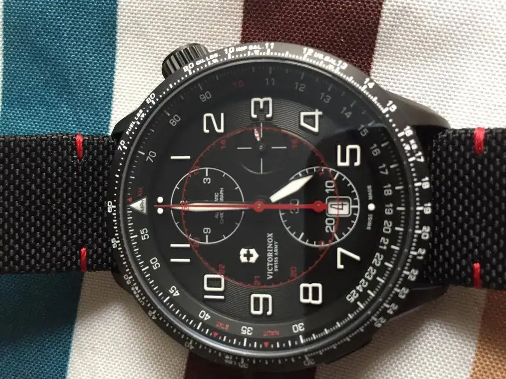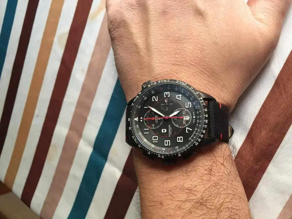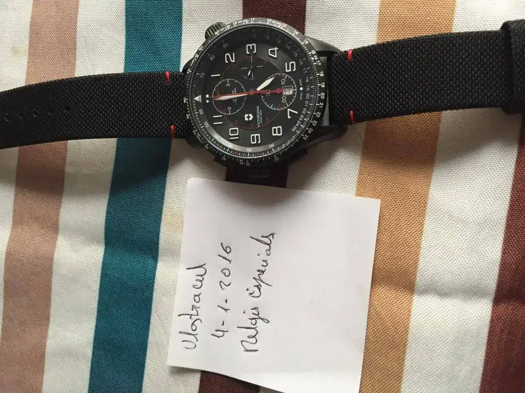 Buenas tardes y feliz año nuevo,saco para venta este Victorinox Airboss match 9 241716 usado levemente(no tiene marcas apreciables,lo único el ínter de la correa algo ennegrecido,por lo demás perfecto)el reloj va con sus cajas y tarjeta de garantía en blanco(doy 12 meses de garantía personal,dando tranquilidad al futuro comprador de su buen funcionamiento)ojo solo de mecánica(de daños estéticos,golpes,roturas de cristal...por mal uso no te lo garantiza ni yo ni nadie)bueno le pongo un precio de 1000 euros(algo negociables)con el envío incluido,un cordial saludo y gracias al foro por ceder el espacio.En la ultima foto se ve cómo queda en mi muñeca de 17,5cm.