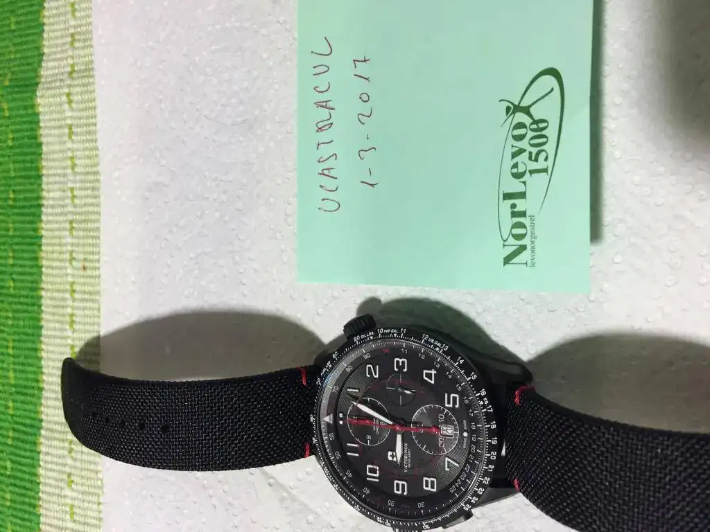 Buenas noches,saco para cambio este Victorinox Airboss match9,el reloj es usado,sin la más mínima marca,funciona perfectamente en todas sus funciones y de marcha diaria esta en más 9",va con todo lo que trae de fábrica(la tarjeta de garantía está en blanco).Busco para cambio otro reloj no superior a 43/44mm,que este en buen estado y de similar precio al mío...un cordial saludo y gracias al foro por el espacio.