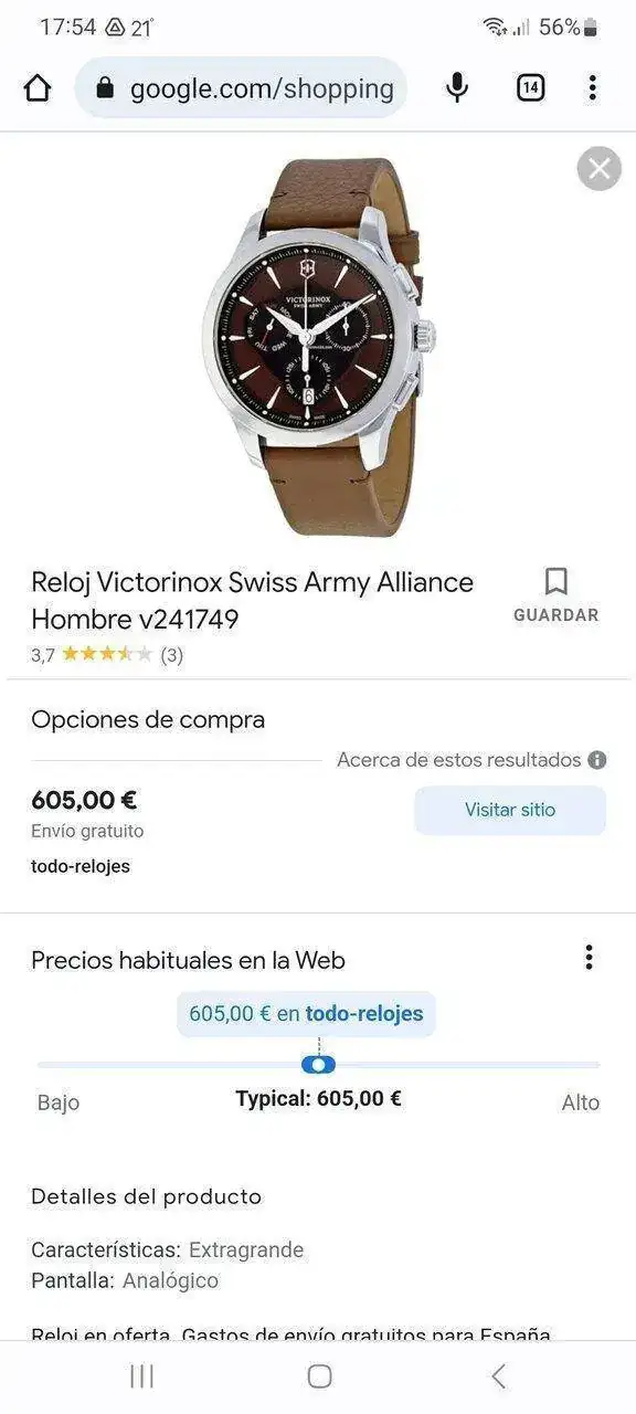El precio oficial de venta de Victorinox que figura en la etiqueta es de 589.- euros. Remarco la condición excelente del reloj al habersele utilizado en muy pocas y contadas ocasiones. Cualquier consulta o duda quedo a vuestra disposición.