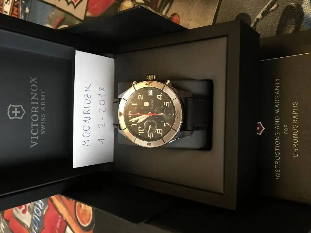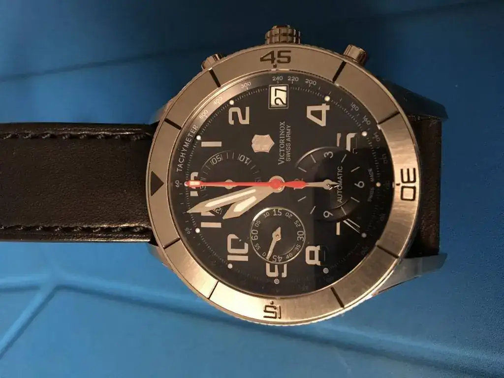 [TD]Pues pongo a la venta este Victorinox Chrono que monta la espectacular Eta Valgrages, calibre derivado del Valjoux 7750, el estado del reloj es perfecto, solo usado un par de dias, el motivo de la venta es que fue otra compra compulsiva y tengo que reducir piezas, el tamaño a pesar de ser 45 mm es contenido porque las asas son cortas y curvan muy bien en la muñeca, la calidad del reloj es soberbia y su correa de cuero es sobria pero muy bien hecha. Poco mas os puedo decir, solo que en principio no estoy abierto a cambios y que el precio esta bastante ajustado con las caracteristicas del reloj, Gracias por vuestra atencion.