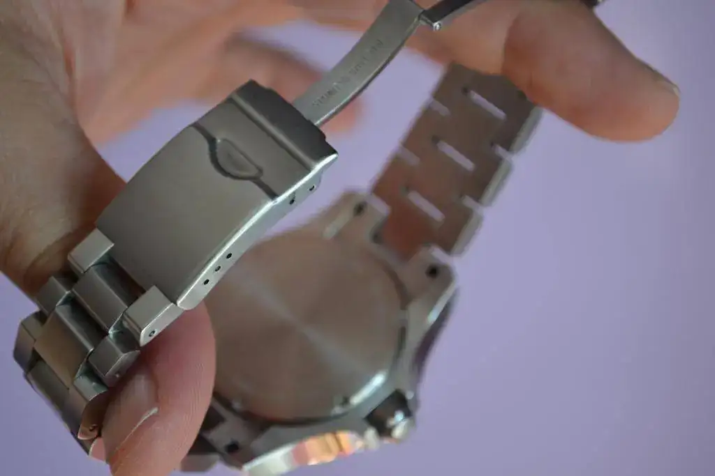 Brazalete: Acero, eslabones macizos de gran calidad y comodidad. Extensión de buceo.