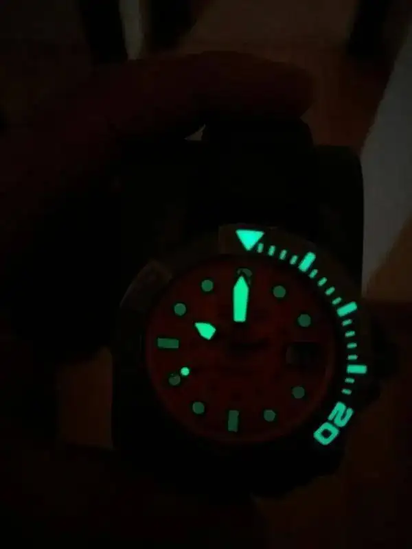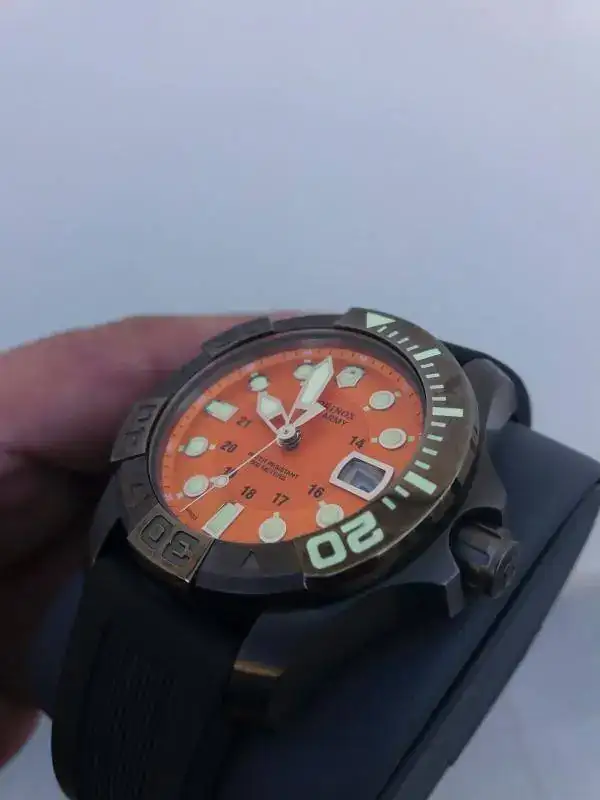 Procedente de un cambio me ha llegado un reloj que no voy a usar. Está en un estado de reestreno total, impoluto. Lo que parecen "rayitas" en el bisel es un efecto de la fotografia, no tiene absolutamente. nada.