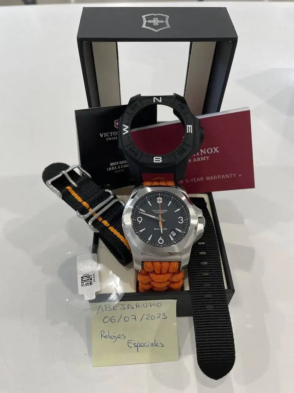 Fruto de esta enfermedad, he adquirido recientemente (hace 4 dias …. ) dos relojes Victorinox INOX para este verano, pero lamentablemente me quedan gigantes en mi muñeca de 16cm así que como se que no me los voy a poner los pongo a la venta con un importante descuento sobre el precio de nuevo para que otro compañero pueda disfrutarlo.