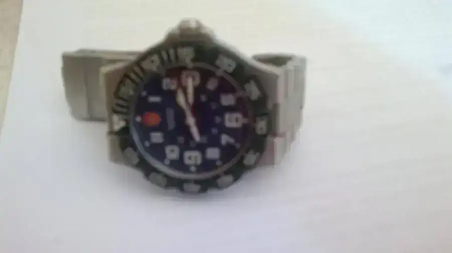 Vctorinox swiss army xlt lg blue bracelet model 241411, esfera azul (que cambia ligeramente con la luz), arañazos visibles en el cierre (nada profundos), en el cristal tiene algún microarañazo que hay que buscarlo casi con lupa y a contraluz (de verdad que son difíciles de ver, si no se buscan con detenimiento, a simple vista ni se ven). El resto del reloj esta en muy buen estado. La caja no se que forma tiene pero es el reloj mas cómodo que tengo, ni lo notas. Lo veo muy cómodo para las MDD, la mía lo a usado alguna vez.