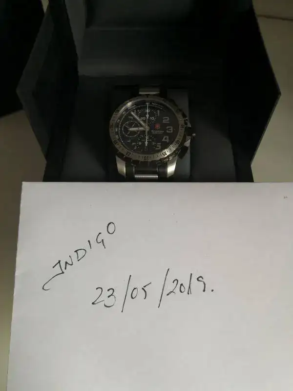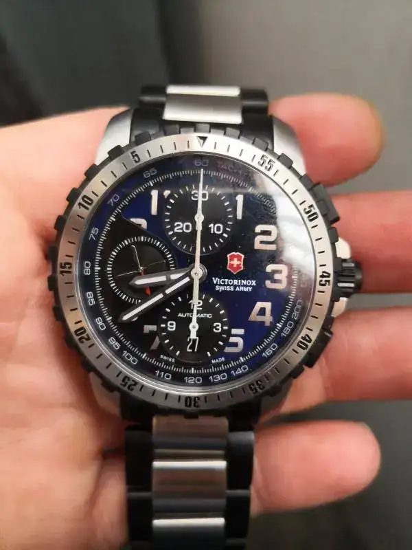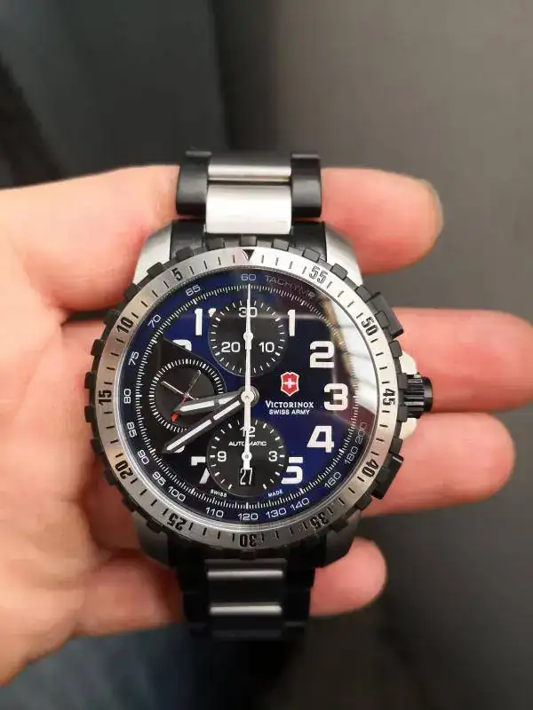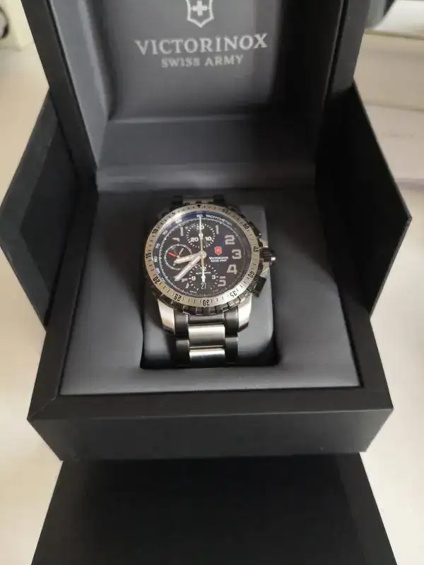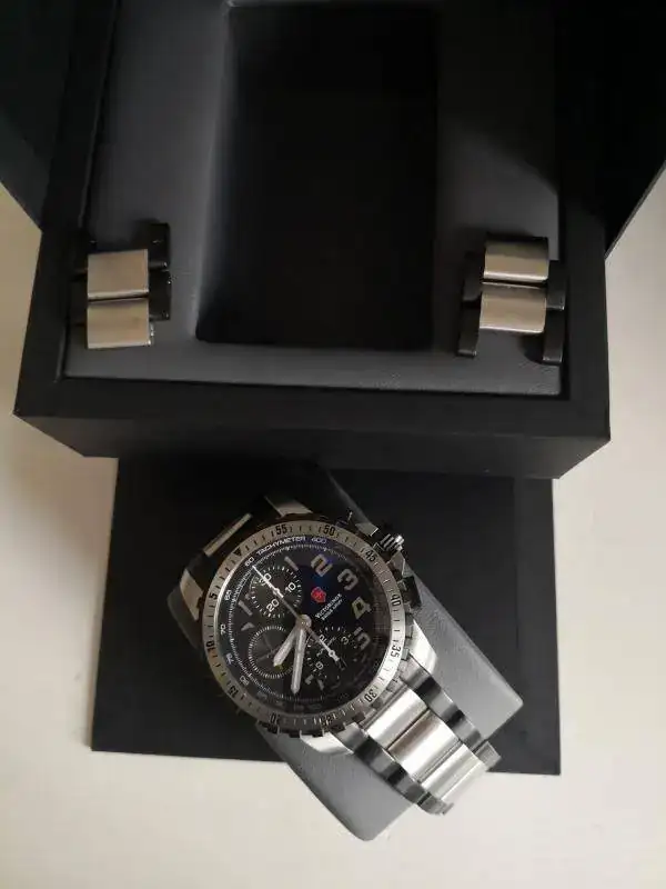 Vendo este Victorinox Alpnach Chrono. Lo compré en Massdrop a principios de mayo. Lo use durante una semana y lo guardé. Tras darle una segunda oportunidad, no termino de verlo. El reloj está prácticamente nuevo (solo lo he usado unos días), por lo que no tiene ninguna marca. Eso si, tiene el armis ajustado para 16.5 cm, aunque incluyo los eslabones que le quitaron.