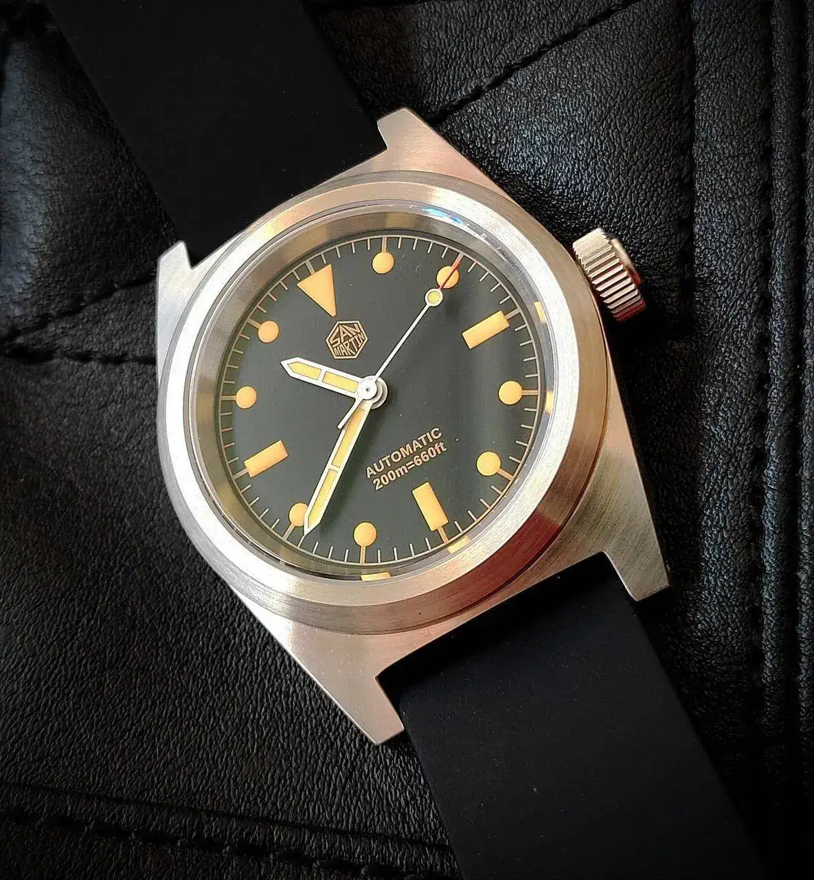 El Radio, la función Fly Back, el bisel giratorio con el triangulito, la esfera mate anónima, los muchos grabados de Fin de Garantía en la tapa trasera o la corona tipo Cebolla distinguen a esta preciosidad, de cuando ‘las grandes’ hacían auténticos ‘relojes herramienta’