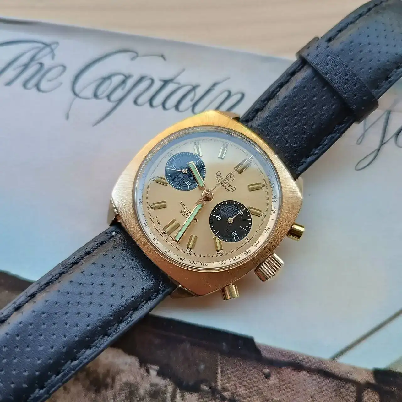 Bonita fotografia, y al reloj esa correa le queda de fabula, a juego con las agujas y el dial,preciosa combinacion.
