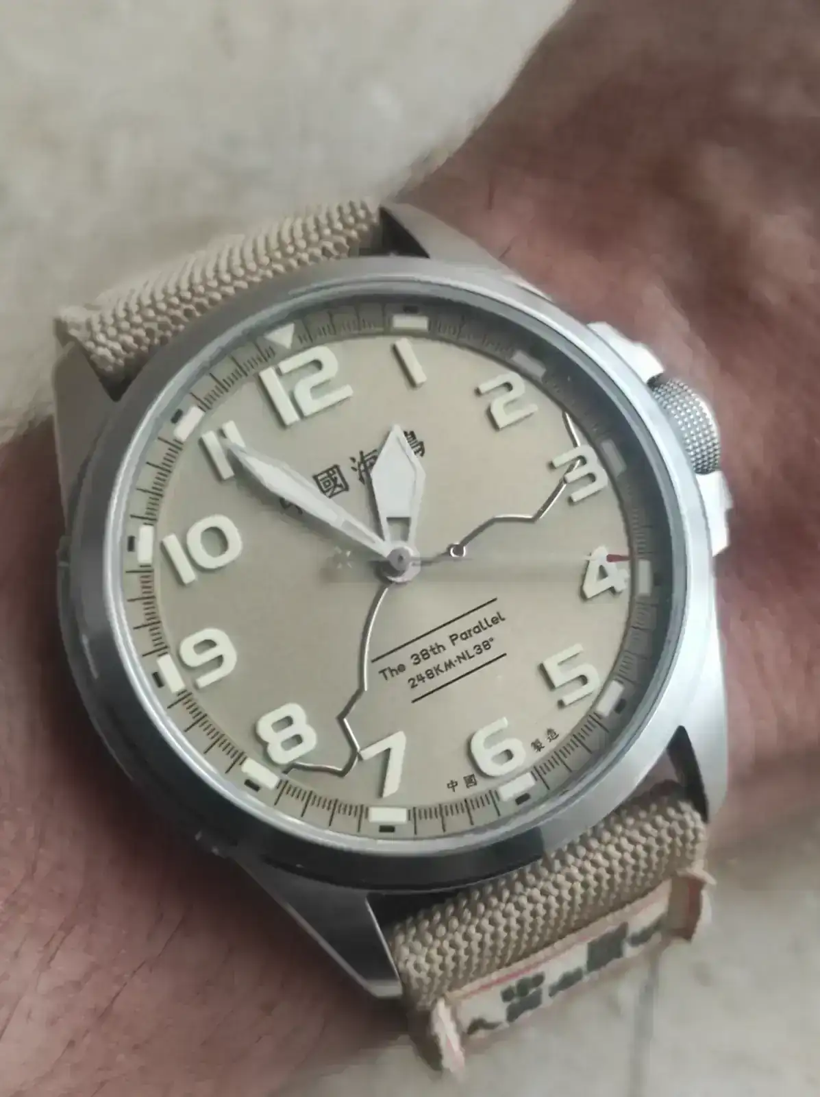 Es precioso y da miedo, las dos cosas, lo que hay detrás de esa línea irregular de la esfera es pavoroso. Está marcada la frontera entre Corea y las fuerzas de la ONU como quedó tras la guerra, el pequeño círculo debe representa el punto donde China ayudó a Corea a mantener sus límites con el sacrificio de doscientas mil vidas.