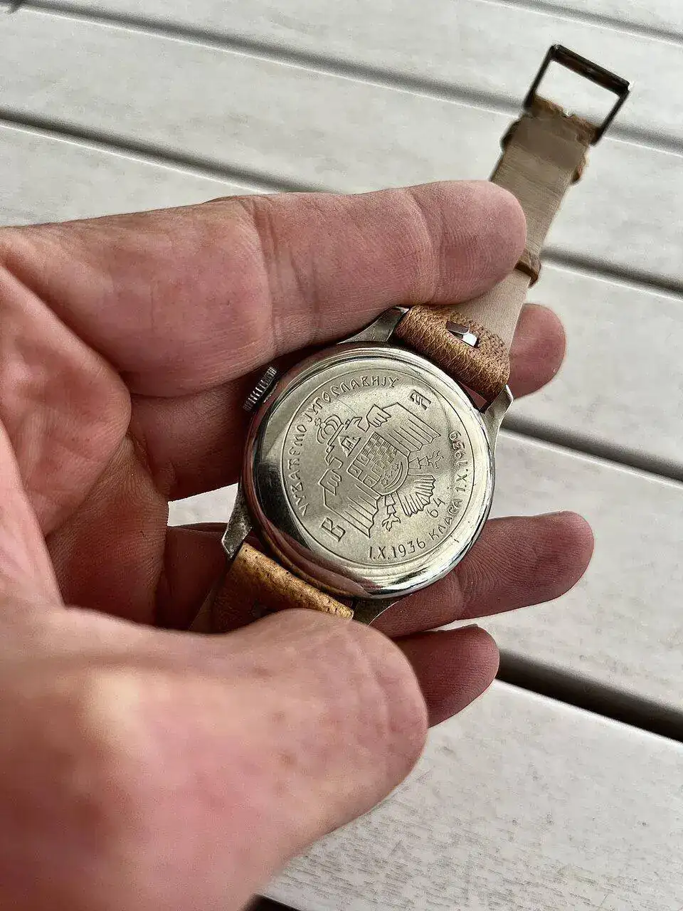 Auténtica joya compañero.Con auténtico mono de vintage, hoy con el Serbian Longines o ‘Serbo’, ref. 2326.