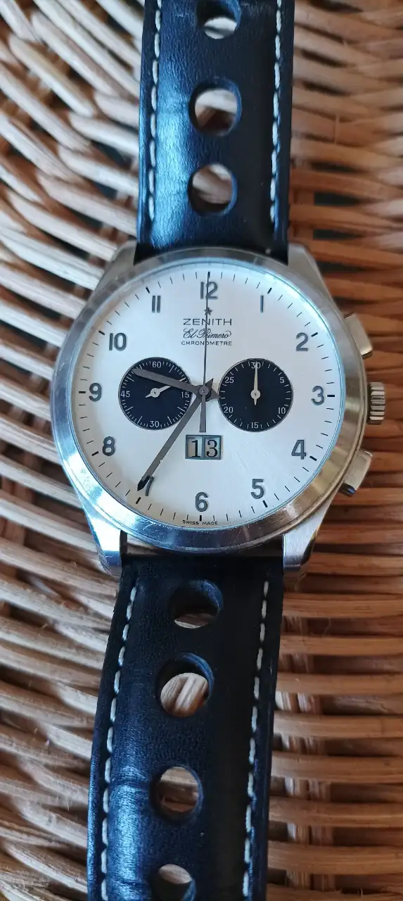 Superwatch cadete de 1978. Este fue mi primer reloj. Me lo regalaron el 4 de junio de 1978, por mi primera comunión. Con él aprendí a leer las horas "analógicas" a los 9 años. El armis original lo tengo guardado porque, evidentemente, no me cabe y he tenido que adaptar el de un viejo reloj digital de señora para poder usarlo hasta que le consiga una correa de su medida. Tiene el eje de la rueda segunda roto y por eso no tiene el segundero rojo que traía de origen, pero funciona perfectamente y en hora. Un saludo y muchas gracias.