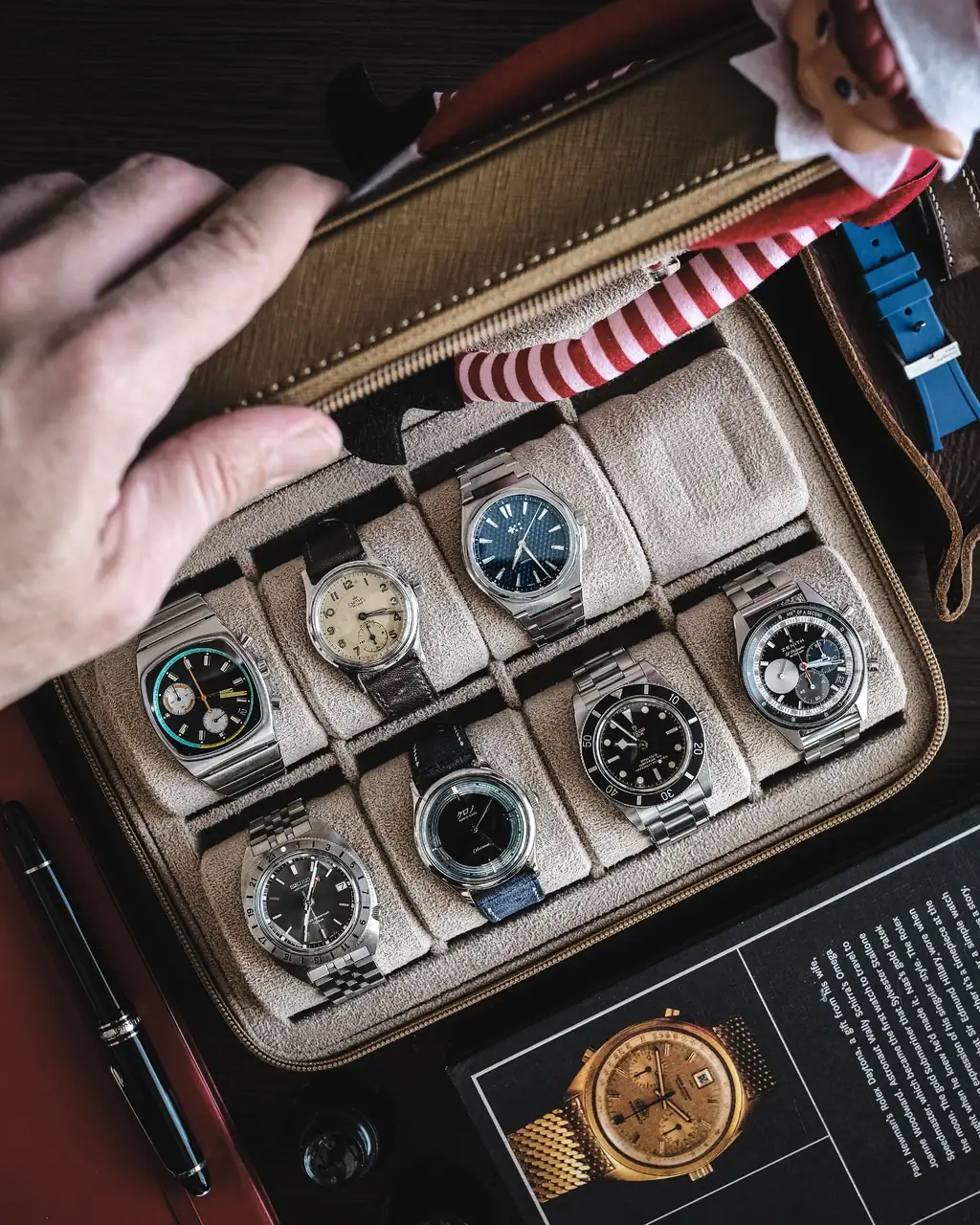 Preciosa colecciónHoy he querido echarle una foto a mi cajita. He sacado los dos relojes que quiero vender (el Alpinist y el Zenith de 1956) y también he sacado el G-Shock; ya que no suelo contarlo como “parte” de mi colección (somos así de frikis).