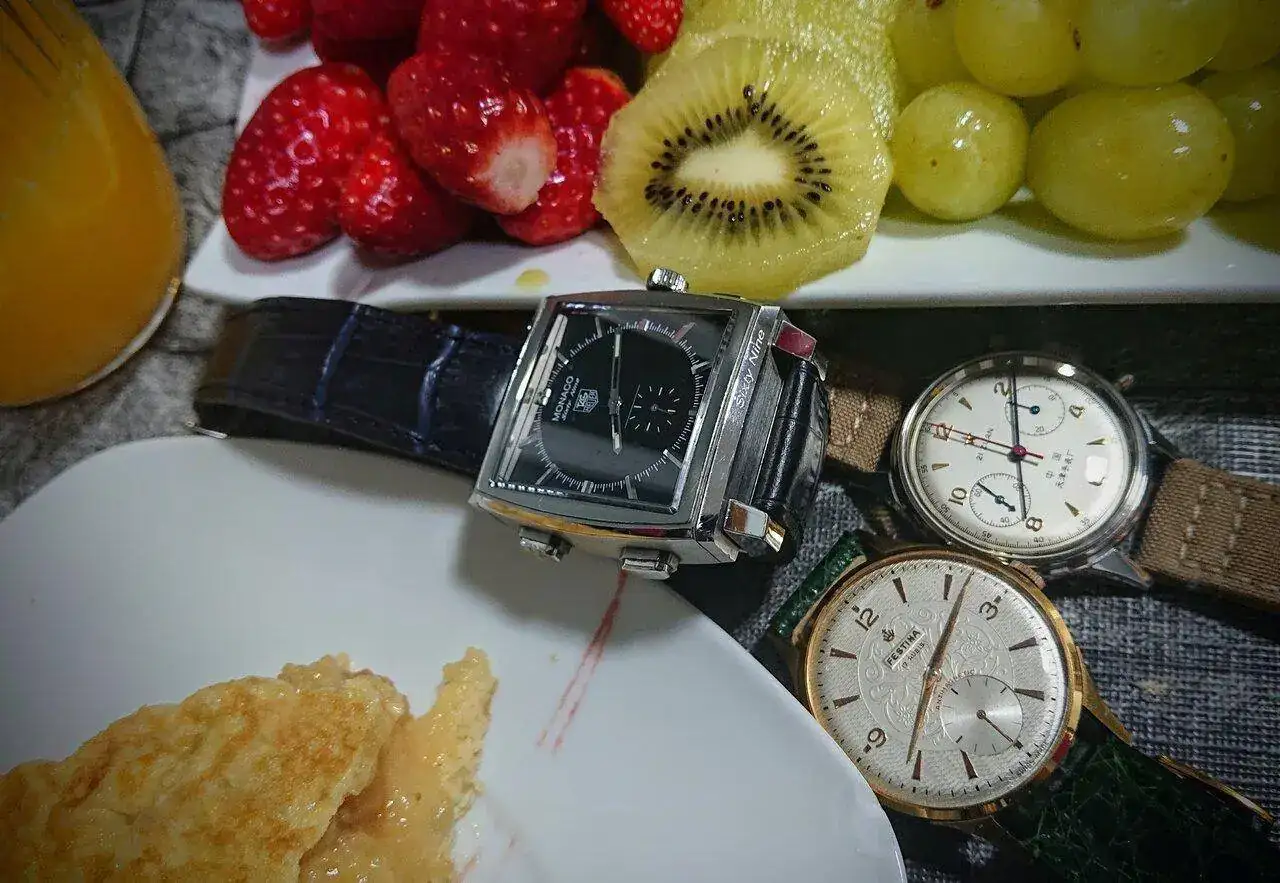 Los acompañantes un precioso y texturizado Festina y un Mónaco 69 por su cara mecánica