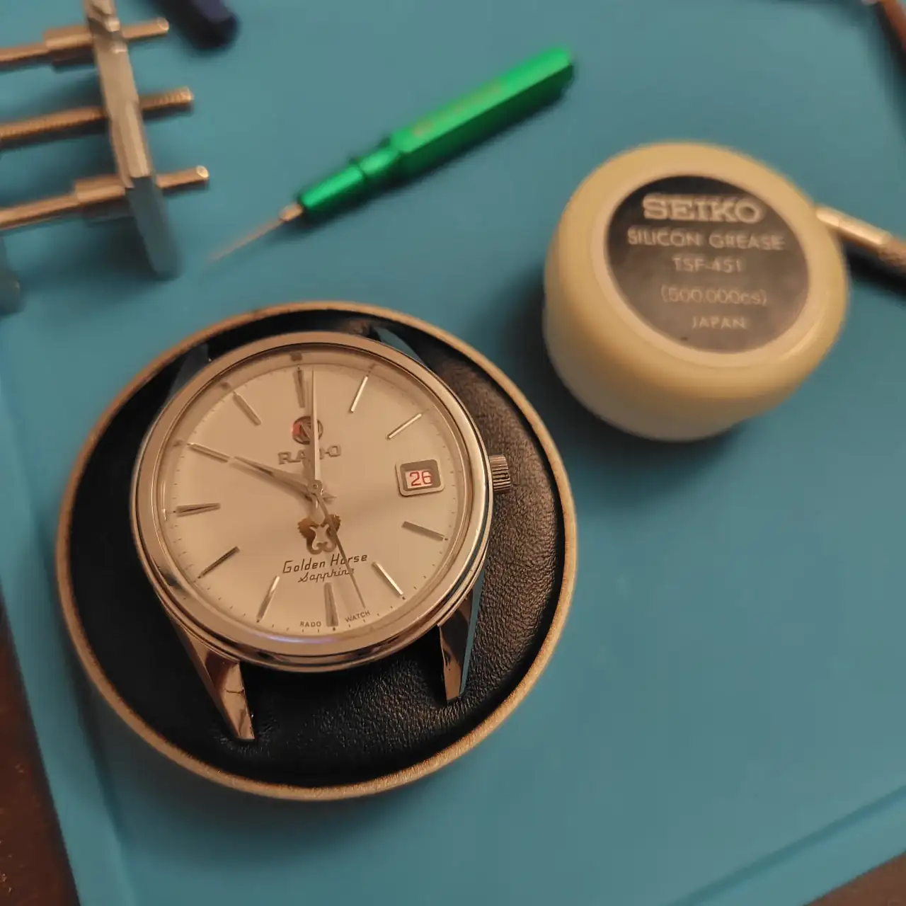 Ha quedado como nuevo. A disfrutarloTras dos días y un montón de horas, acabo de terminar este precioso Rado. Pulido, servicio completo y cambio de juntas trasera y de corona. Falta todavía ensamblar y lubricar el módulo automático y el rotor, así como regular. Otro día.