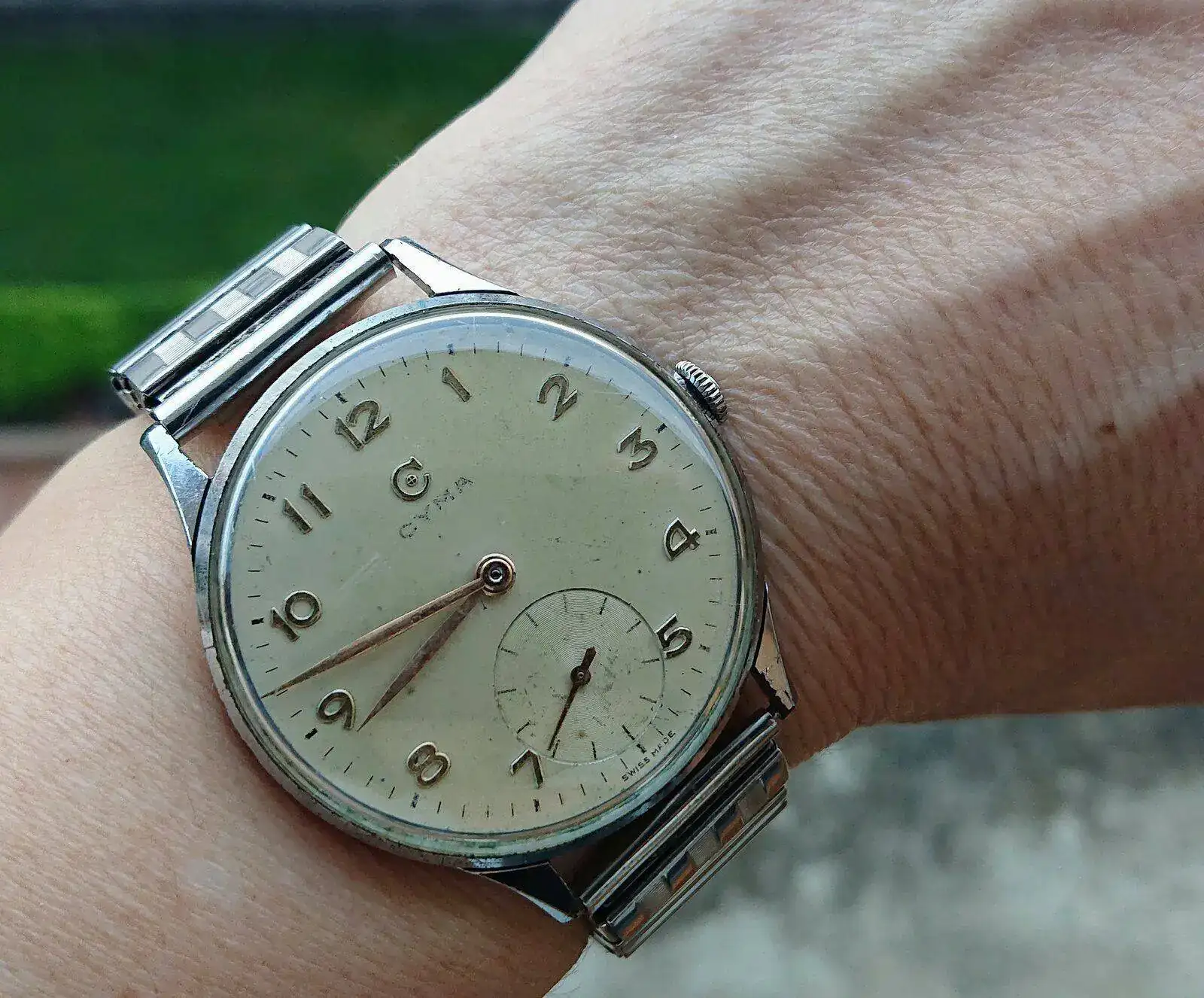 Yo y mi superstición, mi Cyma cymaflex, el reloj con el que siempre voy al médico.