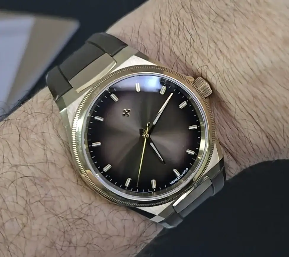 Qué bonito, Robert!Hoy con el nuevo integrante de la colección. Este Venezianico Arsenale de Bronce. Con un Miyota 9039 y un bronce al estilo de la marca, que lleva un 9% de Aluminio y un 4% de hierro (el resto es cobre) qué le da ese toque dorado y resiste mejor la Pátina.
