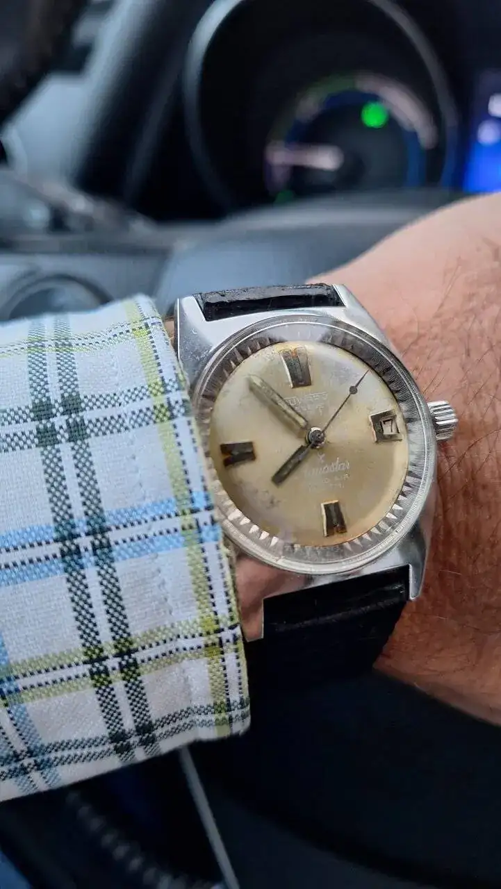 Muchas gracias por el cumplido y sí, es un reloj que me gustaba porque ese dial "burgundy" lo hacía diferente. Respecto a la correa, era de un stock antiguo en una joyería local😁 (esa sí que la conservo, por si cae algún otro reloj vintage de medidas similares).