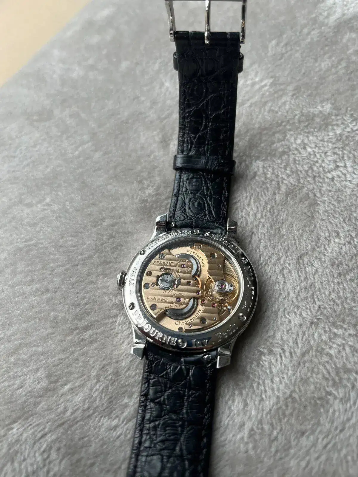 Gracias domdorellana, pues de propina la trasera (caja de platino y calibre de oro, poco más se puede añadir):Que pasada de reloj, si señor. Buen día!