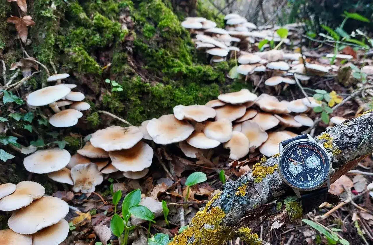 Impresionantes maestro.Citizen y Agrocybe aegerita (seta de chopo)