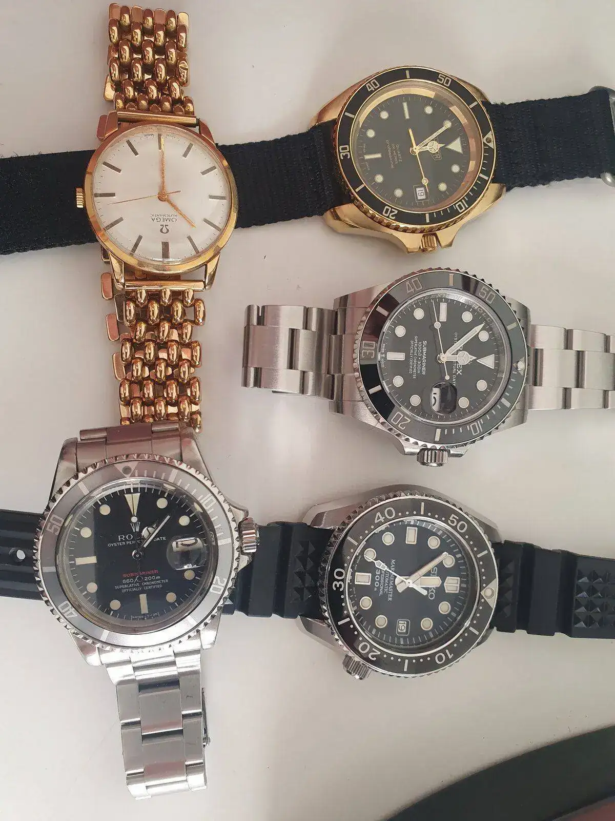 Hoy día festivo he aprovechado para limpiar y ordenar piezas. Y como es el día de los padres he puesto los relojes de mi abuelo y mi padre junto con mis tres divers negritos preferidos.