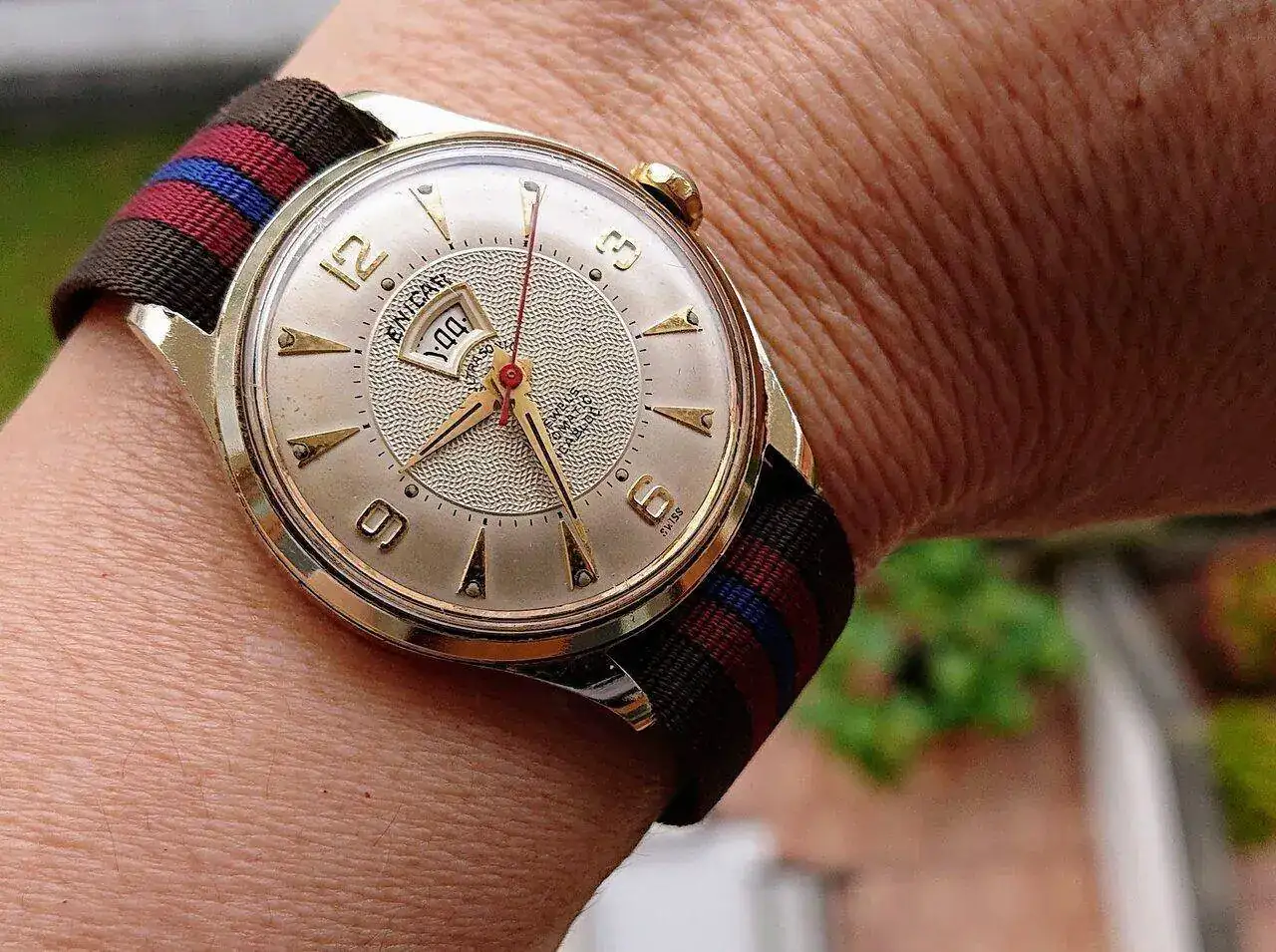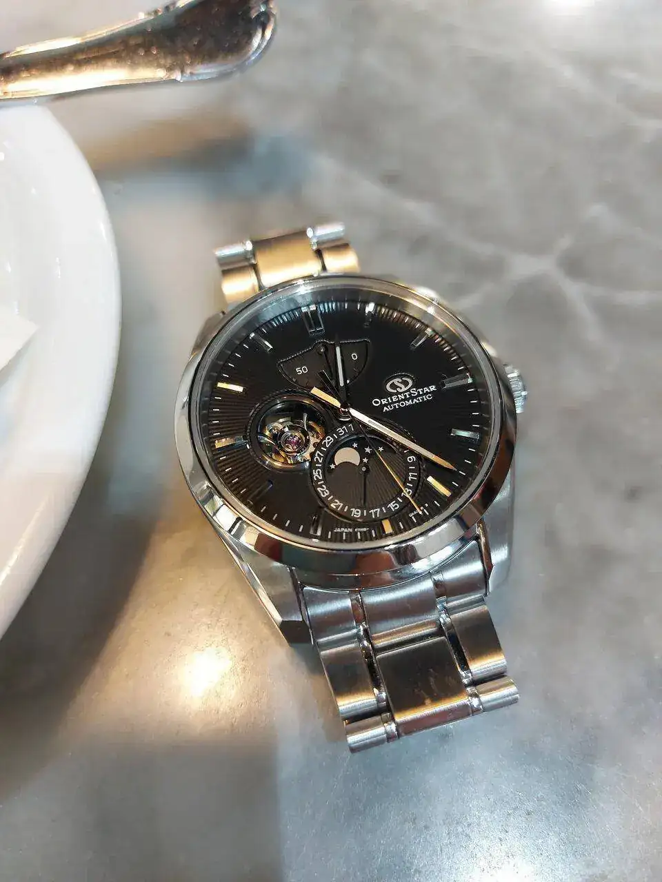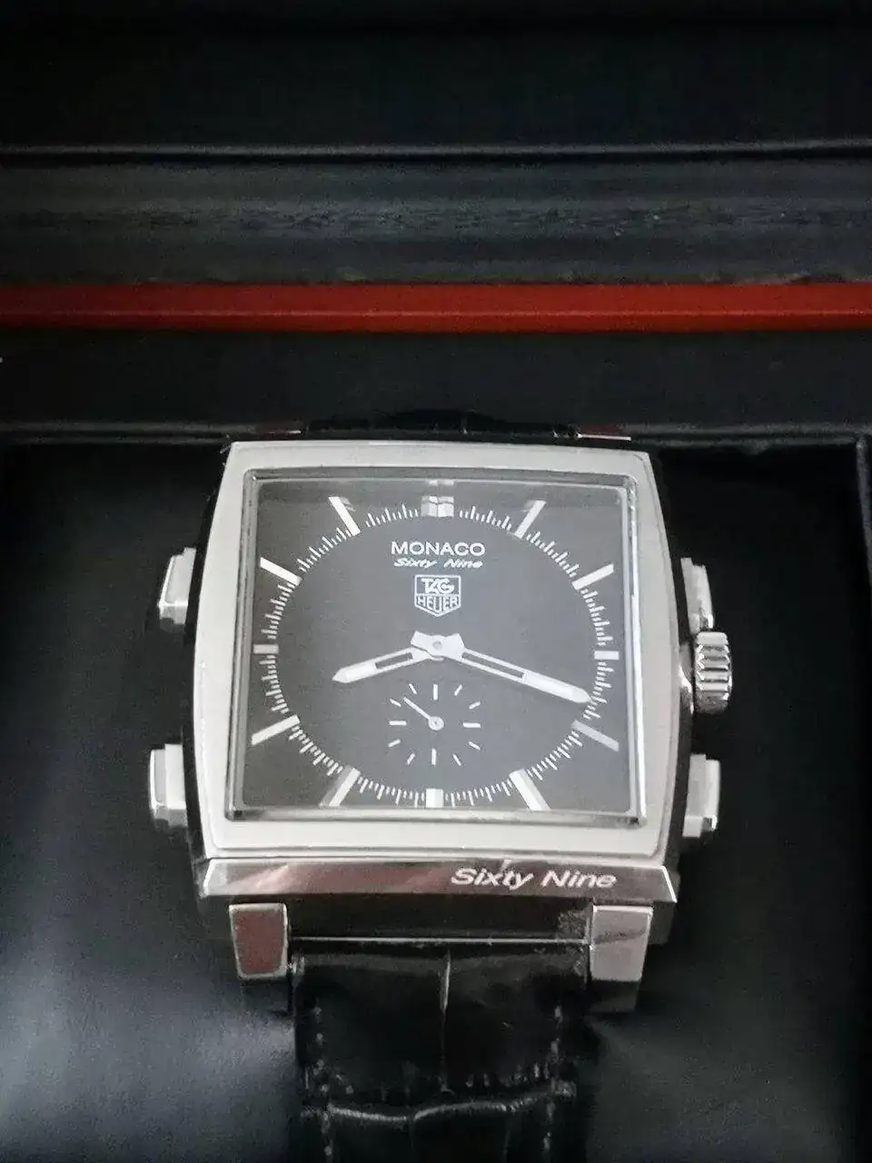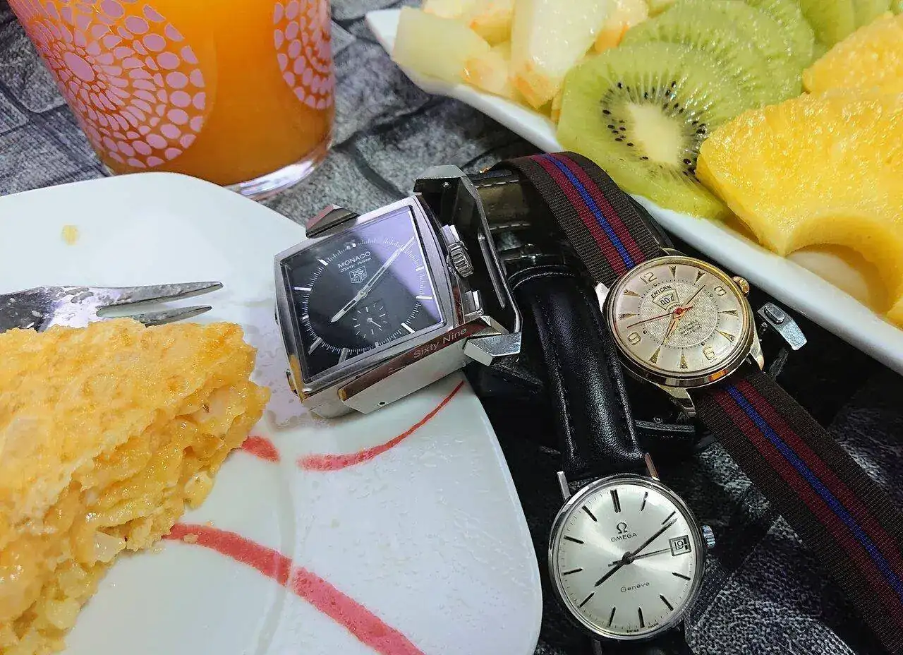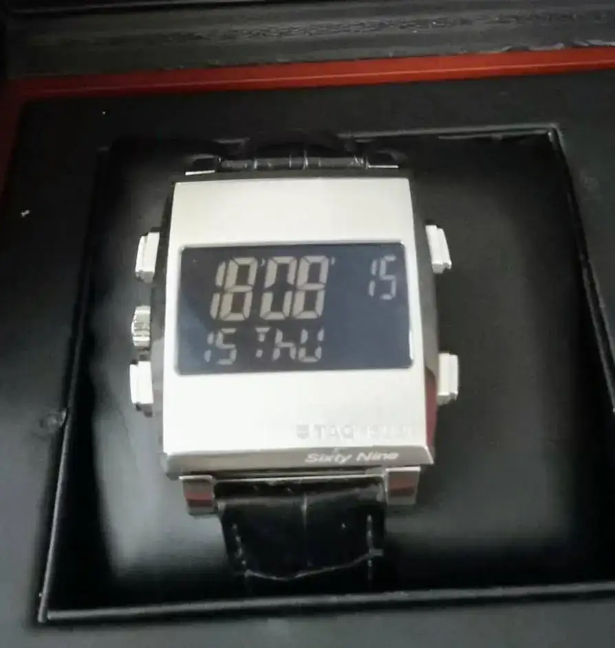 Es de uno de mis amigos de desayuno, así que no puedo hacer más fotos hasta la próxima vez que lo traiga, que procuraré acordarme, pero tengo un par de fotitos de cuando lo compró, porque le ayudé con ello. Espero que no se moleste el autor 🙏 Es reversible: por un lado es el Mónaco mecánico y normal que se ve en la foto de hoy y por el otro lado es digital