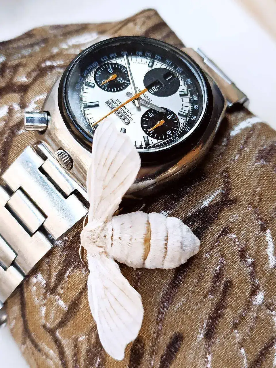 Bonitos relojes y bonitos bichosBuenos días, el reloj de hoy acompañado por una Mariposa de la Seda.