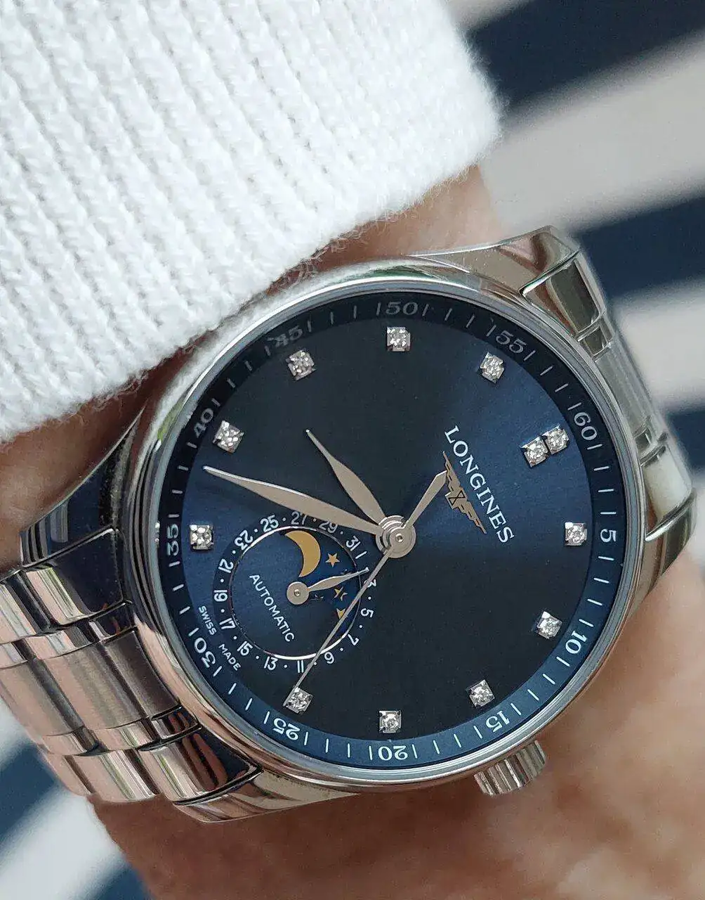 Hoy le ha salido el matiz grisáceo a este azuloso, el que le da el toque sobrio y elegante a esta setentera esfera